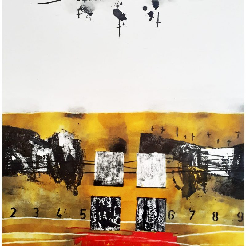 Collision 15 by Sioux Tempestt – From the ‘Collision’ series of paintings exploring the dynamic interplay between colours, forms, and shapes. The abstract painting captures the essence of dynamic intuitive mark making overlaid with highly intentional shapes to form beauty. Forms and colours meld in a dance of artistic expression, creating a striking composition to challenge traditional notions of aesthetics.
