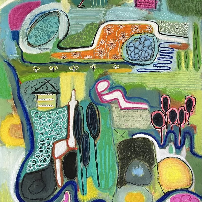 This original painting continues my experimentation with using different techniques to apply the paint. The work was created using Sponges, rags, plastic, scrapers, paint pens, spray packs, in fact anything except brushes.
