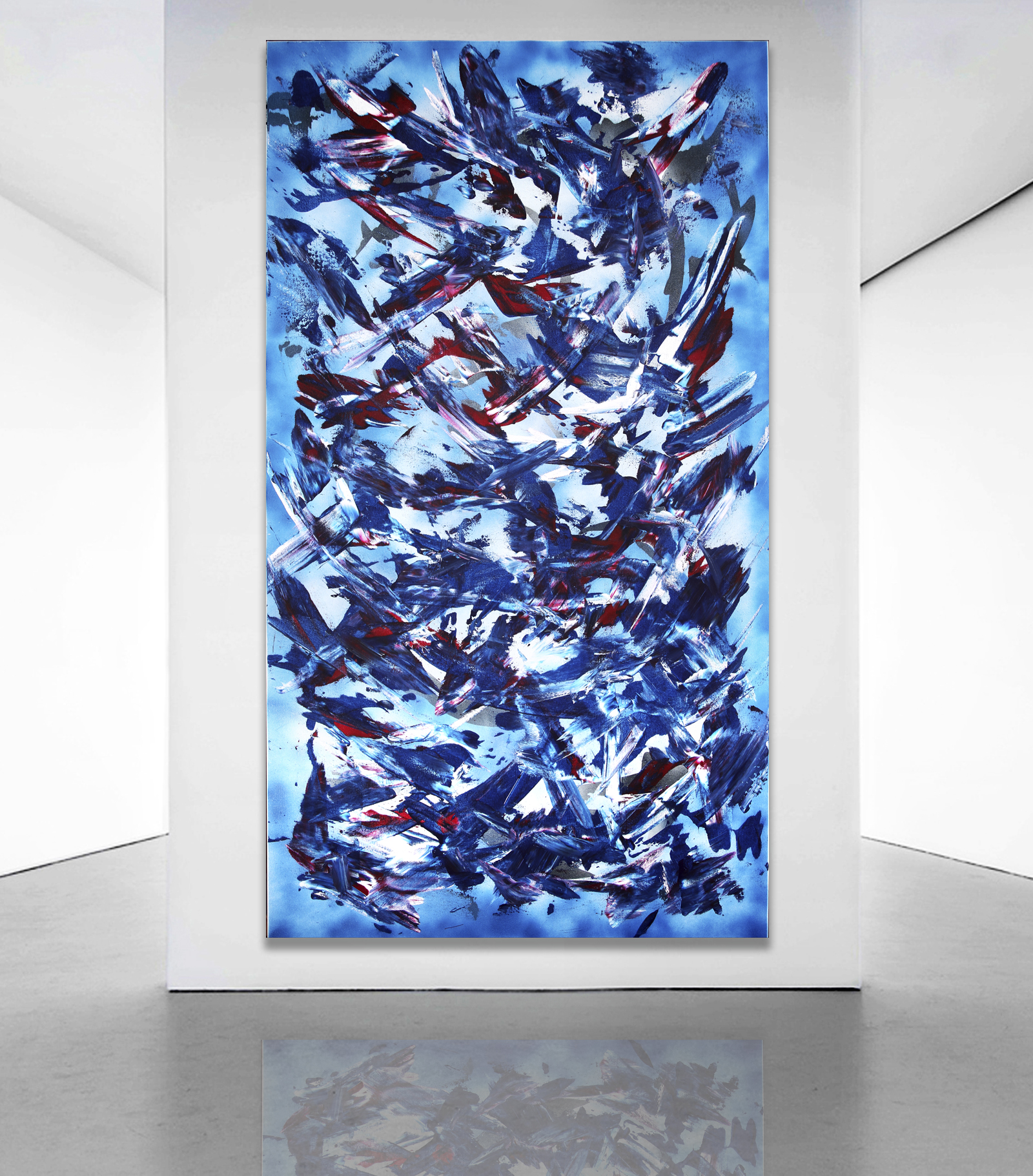 Colour Conflict by Estelle Asmodelle – This artwork explores conflict. At this point in time in the world, we see conflict and that conflict is often internalised. This painting puts colours in conflict, to allow the observer to reflect on those emotions. Painted in the style of abstract expressionism.