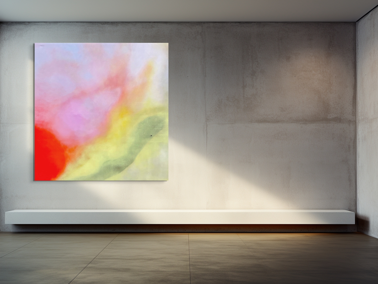 Colour Field 3 by Prue Crome – Â is a large abstract oil painting inspired by the way light and colour can expand and contract space. Cadmium orange and yellow becoming subtle layers of titanate yellow, pink, beige and white.