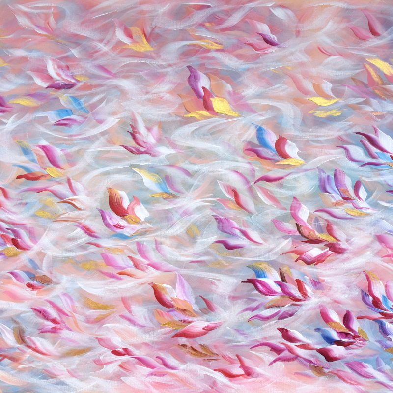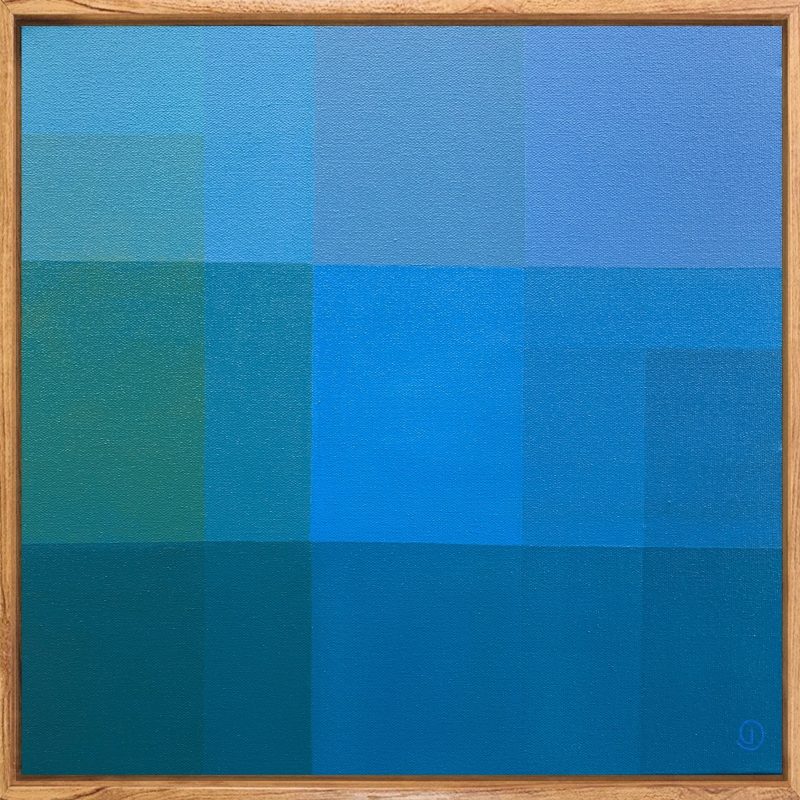 The Colour Field series and other paintings followed on from my installation works investigating mechanisms using light and colour to shift the perception of 3D space. In these 2D works I am purposely creating a space with no ground, shadow, line or gestural mark. The titles are named as a literal statement for identifying each work and to avoid directing a specific meaning, allowing the viewer to generate their own experience or feeling rather than a thought. They could be reflections on a moment, awareness of the subtlety of colour interaction, spatial expansion or alteration through a colour intervention.
