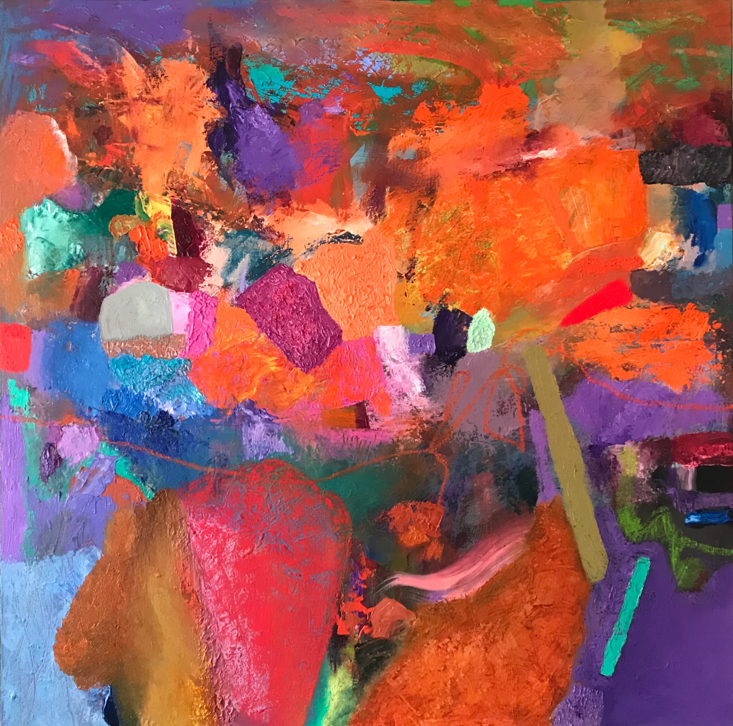 ~Layered oils and oil pastels on deep edge canvas 102 x 102 x 4cms