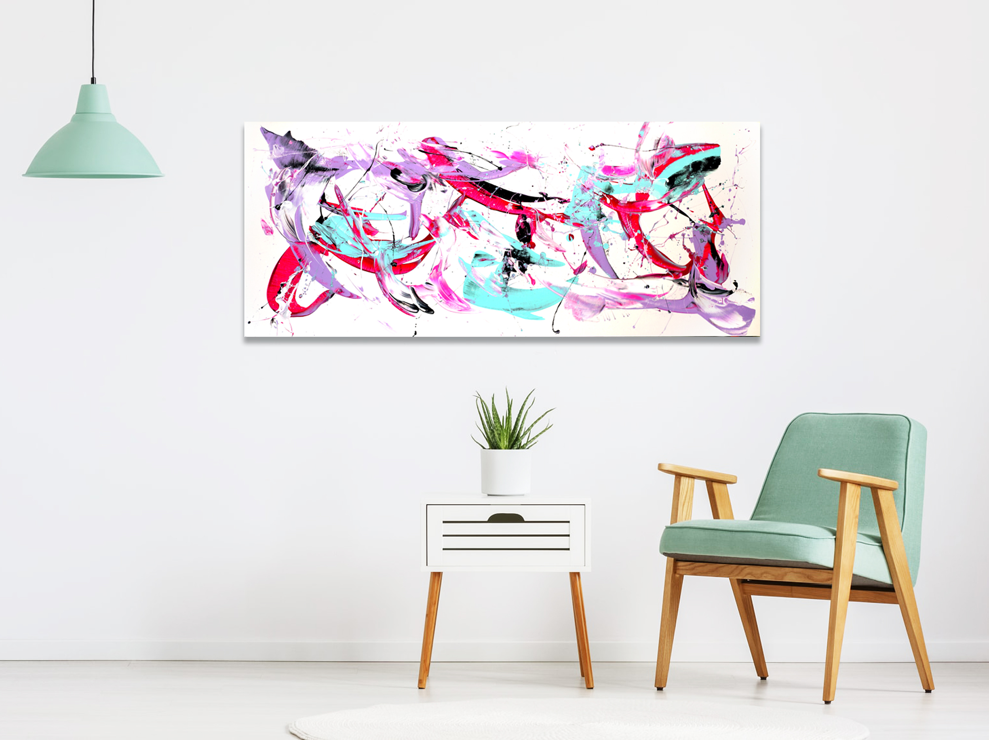 This artwork is painted on professional-grade canvas stretched and sealed with varnish. The canvas is 152.4 cm in width by 61 cm in height.