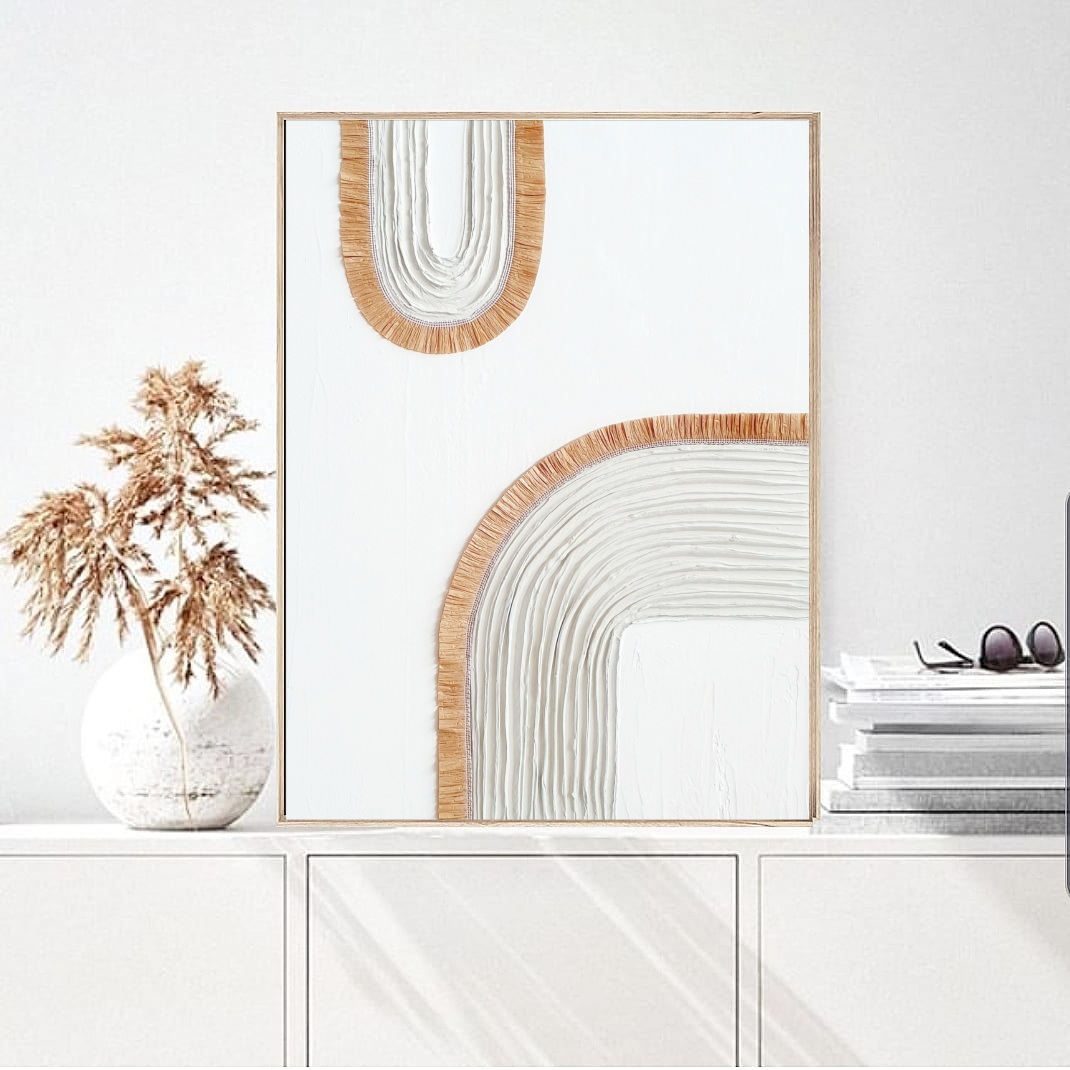 The artwork is white colour with patterns in shades of natural light brown colour on the textured geometrical aspects.