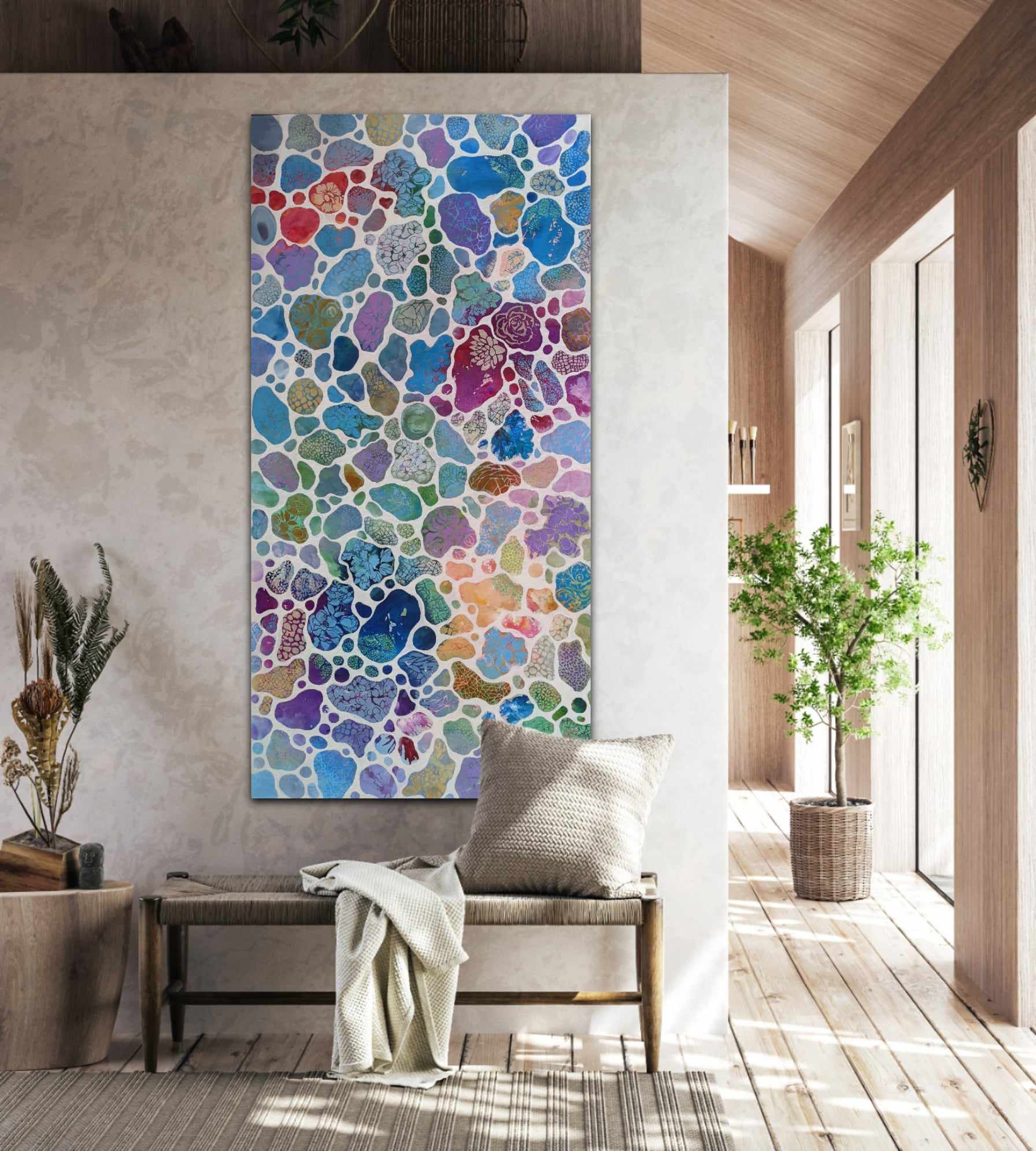 This contemporary and vibrant abstract painting is part of a series I absolutely loved creating. The artistic process involved multiple layers, and every step was a tranquil and almost meditative experience.