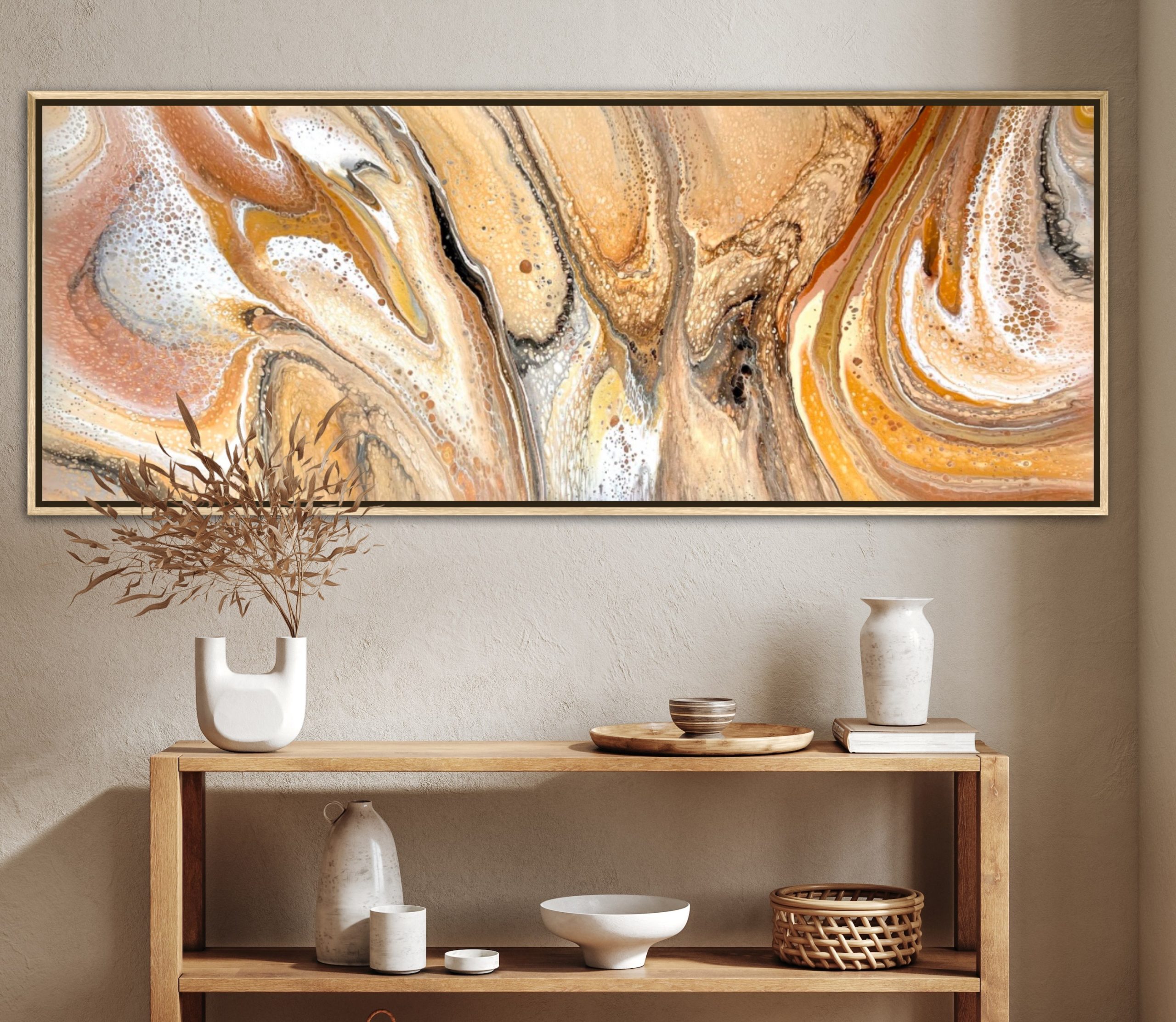Coloured Sand & Stone by Angela Roskell – an extra large multi-directional abstract acrylic painting stretched and ready to hang. Exclusive to Art Lovers Australia
