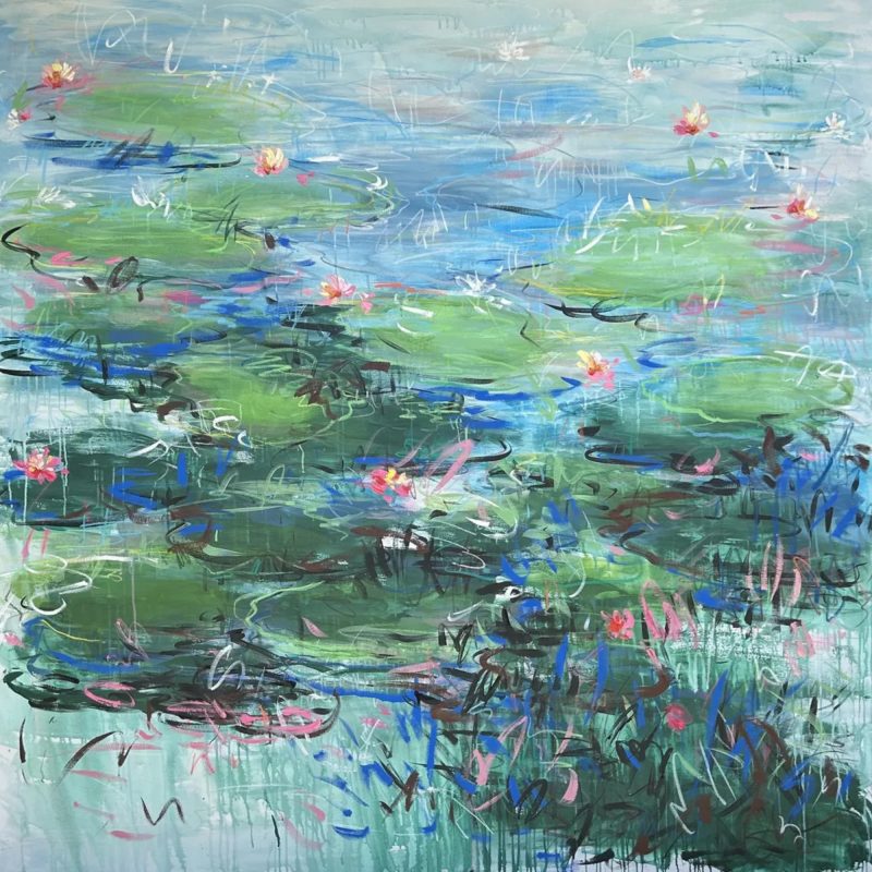 In this Colourfield series, Charlotte is inspired by colour theory and stylised forms from nature (such as aerial views of rural paddocks). She embraces a distinctive, abstract style, overlapping shapes and layering vibrant colours to achieve a sense of luminosity and equilibrium. Using archival colour pencil on wood board allows Charlotte to incorporate the natural grain and imperfections of the surface into the artwork creating textural elements that emerge on closer inspection and give added complexity and a sense of depth to the piece.