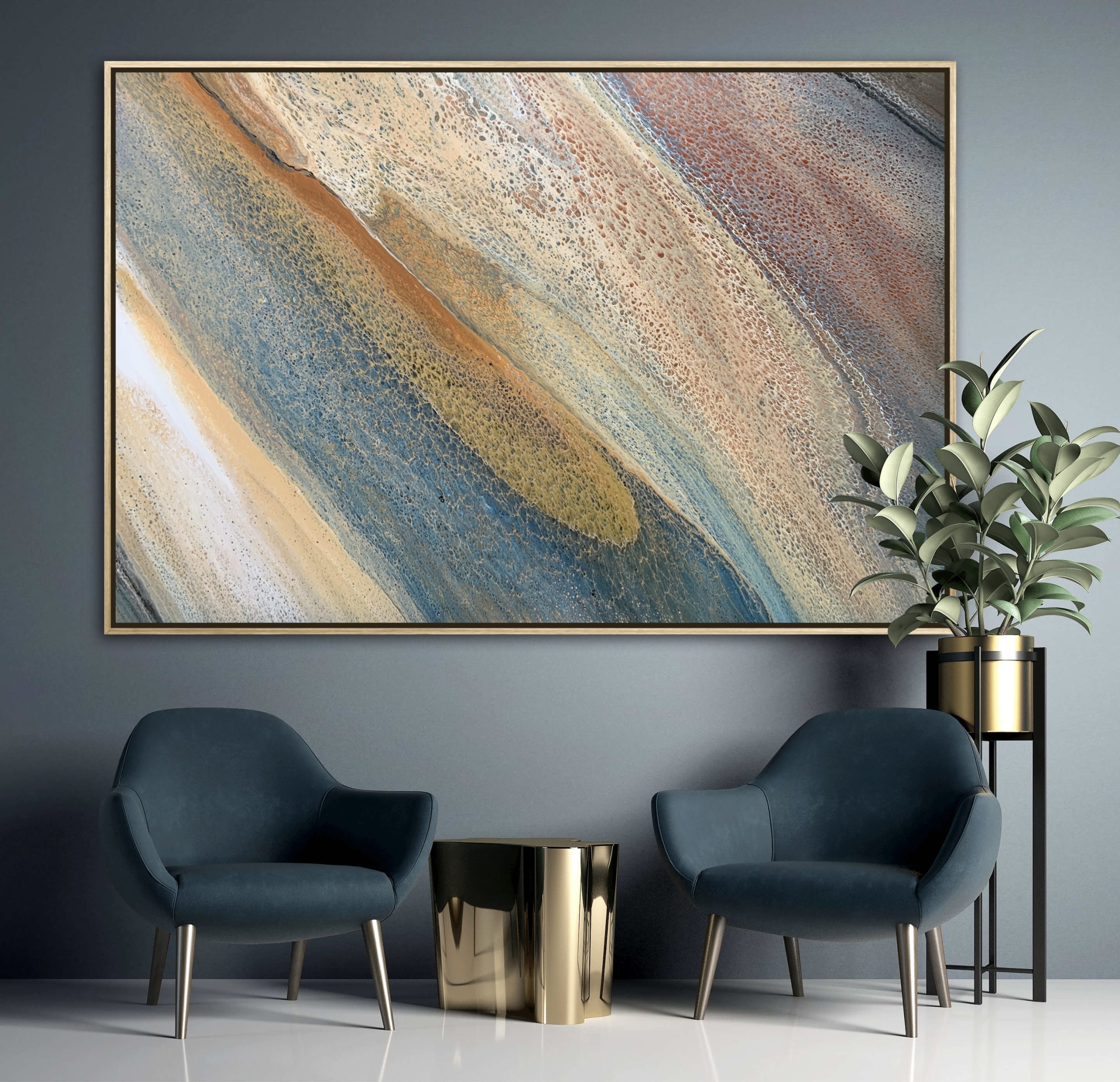 ‘In situ’ photos have been included to help with visualisation of the artwork in your home. In situ photos provided were created using the ArtStage app and may not be perfectly to scale. This being said, every effort has been made to represent the size of the art accurately but please read the dimensions of the artwork to ensure it fits your space perfectly. Where provided, photos of framed art are for illustrative purposes only.