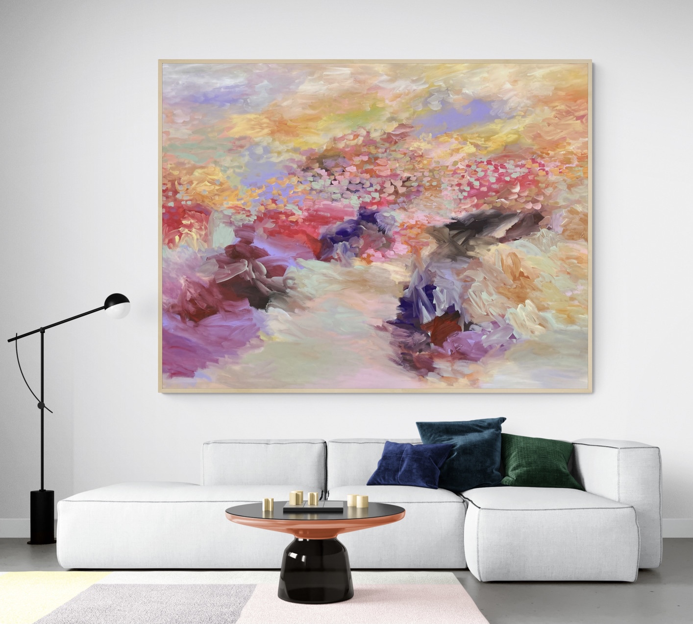 Colourscape a painting with beautiful warm and cool colours of the outback with petals flying in the wind falling over the landscape. Sunset is falling over the landscape capturing the beautiful colours of the sun reflecting on to the petals and land to create this harmonious composition of colours . A small bouquet of petals dancing over the landscape like butterflies . A very peaceful and tranquil painting with lots of layers of paint creating so much depth to the painting . This painting is painted on a fine linen canvas.The painting is signed and dated 2021 at the back and comes with a certificate of Authenticity.