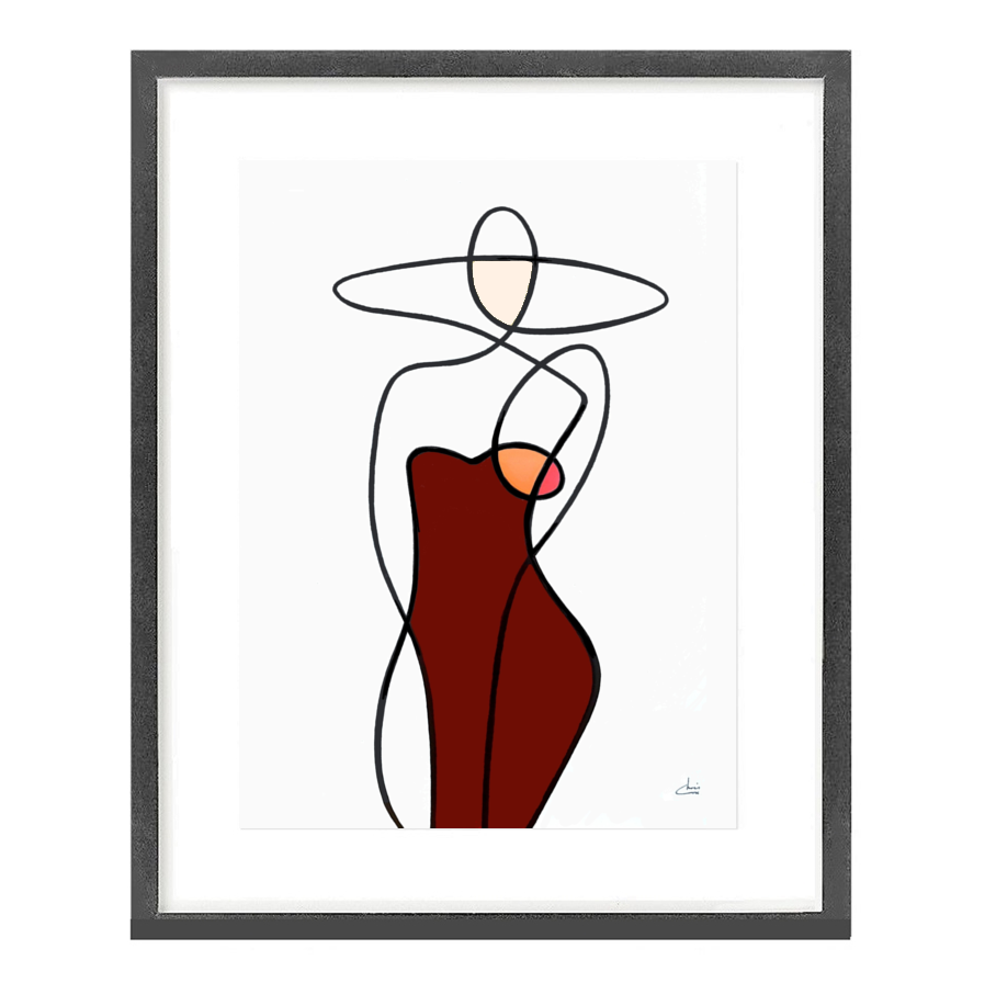 A study of the womans body and form. An original oneline acrylic piece making use of freeflowing lines to create an aesthetic and simple depiction. The work is suitable to most interior design application with the use of black and white freeflowing lines along with colour accents. Highly suitable in modern and contemporary homes and office space.