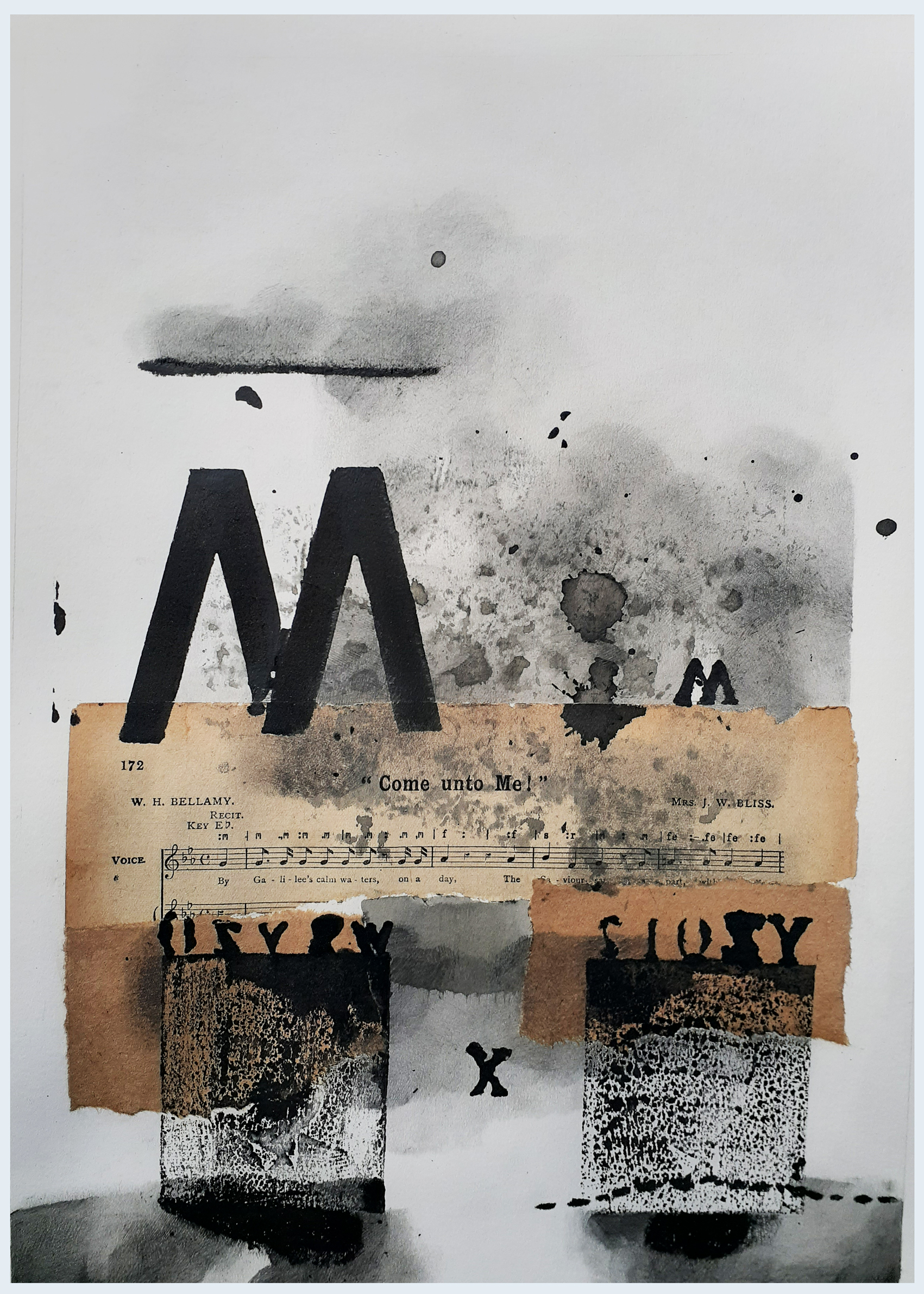 ” Come Unto Me ” is an original mixed media artwork by G Kustom Kuhl that uses various mediums including pencils [various and layered], inks, paint, paper, stencils and vintage printing plates that have been relief printed. The work explores the idea of combining our two lives [physical and spiritual ] and embracing the emotional joy that it brings to keep progressing unto something more than could be imagined. Braking barriers never known before.