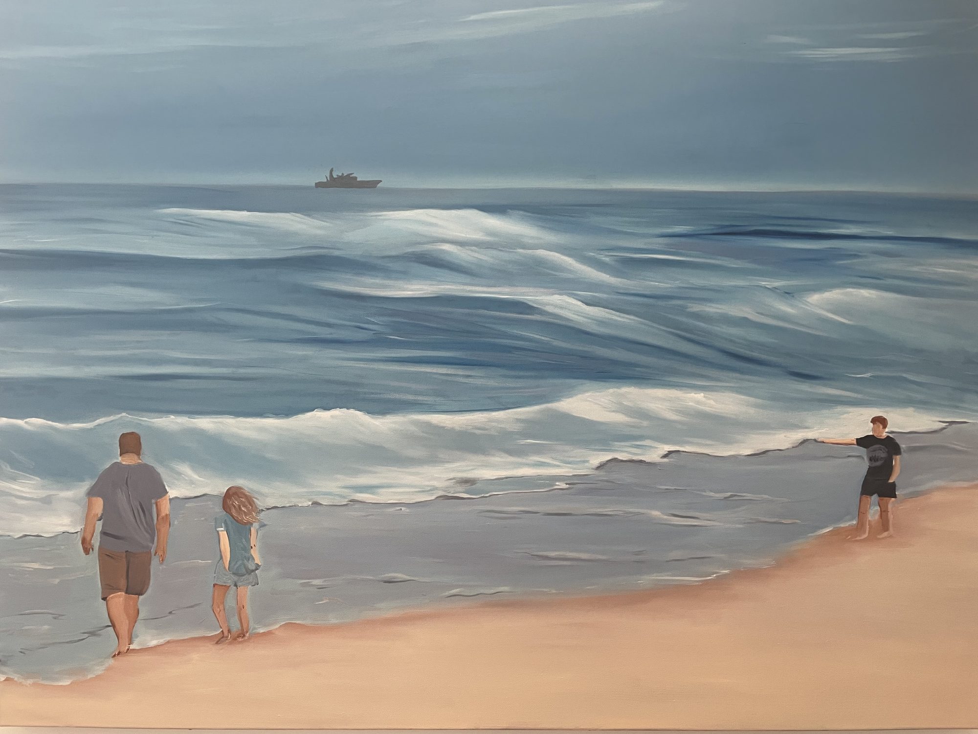 Commissioned family on beach, painted with abstract figures from photo. Captured memories painted into original artwork on canvas.