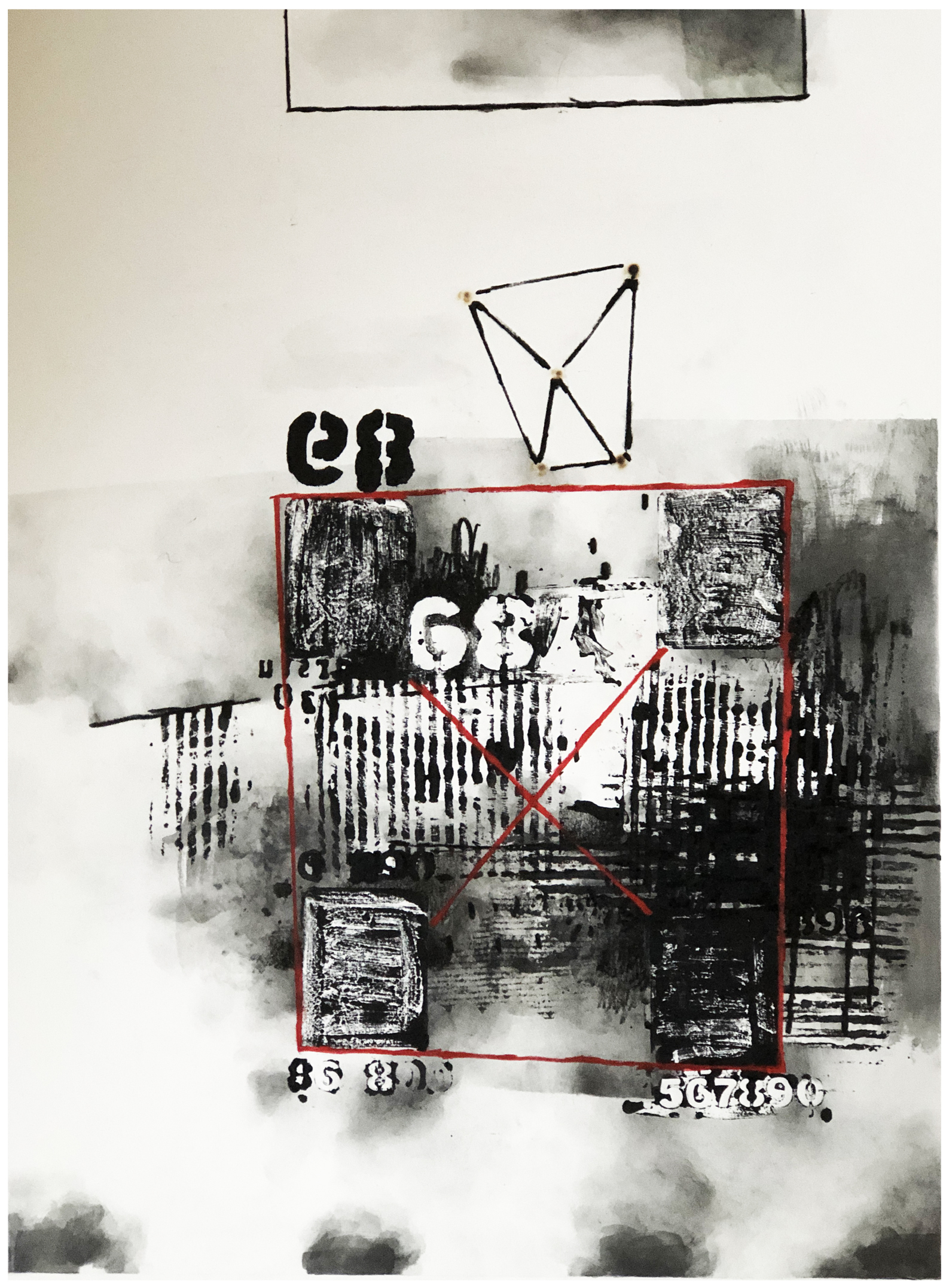 Composition No. 249 [Four Corners ] is an original mixed media artwork on Saunders Waterford 425 gsm paper, that includes the use of hand made forms [relief printed], pencils [various types and layering], inks, paint, oil sticks and stencils. The work explores the theory of vibrating forms or surroundings that we either ingulf or repel. The notion that these forces can [when positive], enhance and add to our own growth and force in conquering many things.