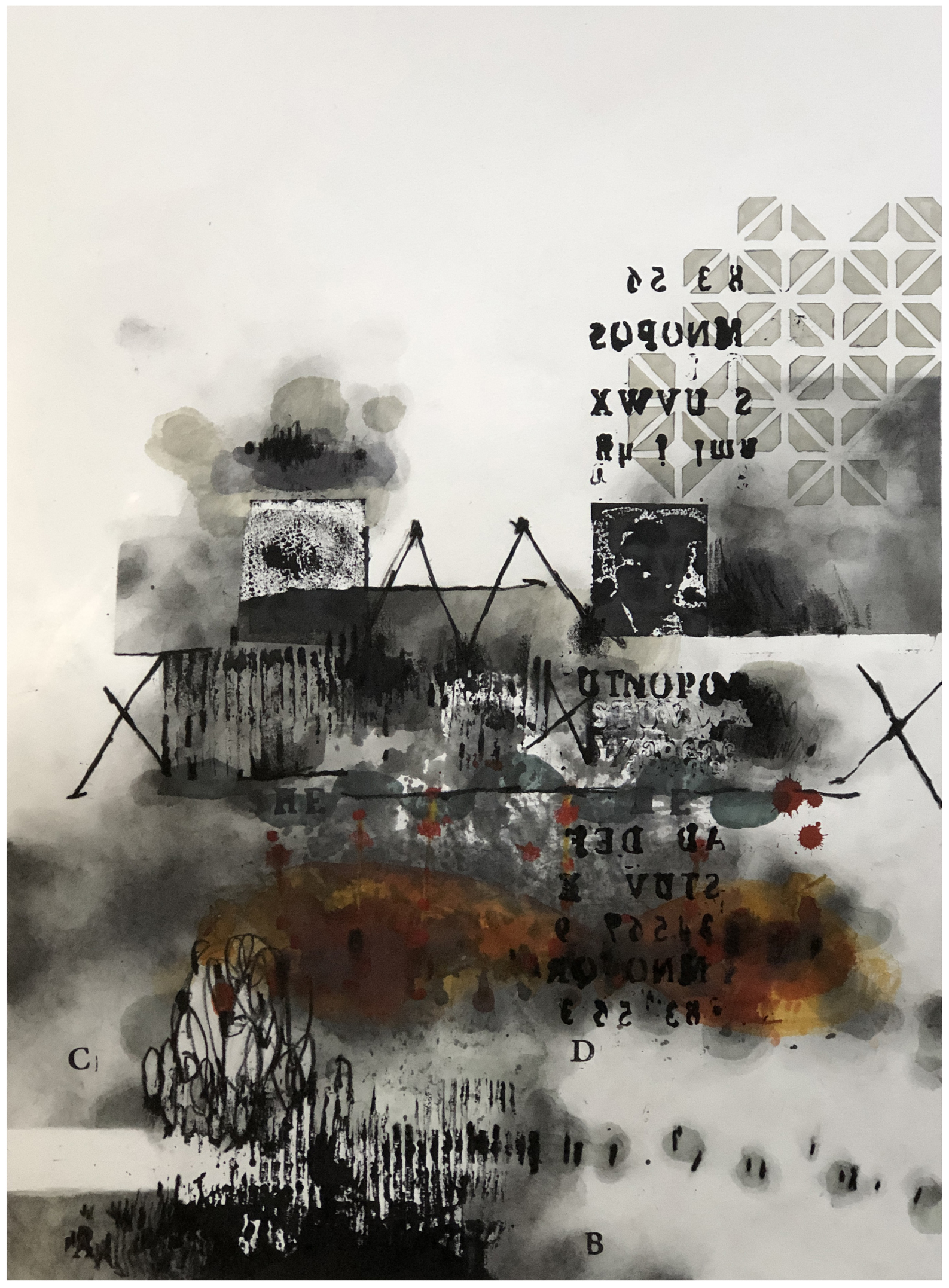 Composition No. 250 [Clandestine] is an original mixed media artwork on Saunders Waterford 425 gsm paper, that uses pencils [various types & layered], inks, paint, oil sticks, stencils and hand made form that are relief printed to make up the composition. The basis of this original artwork is reflecting on the notion of the idea that starts within and then explores the outer boundaries of our existence. The movement of grow that can be seen.