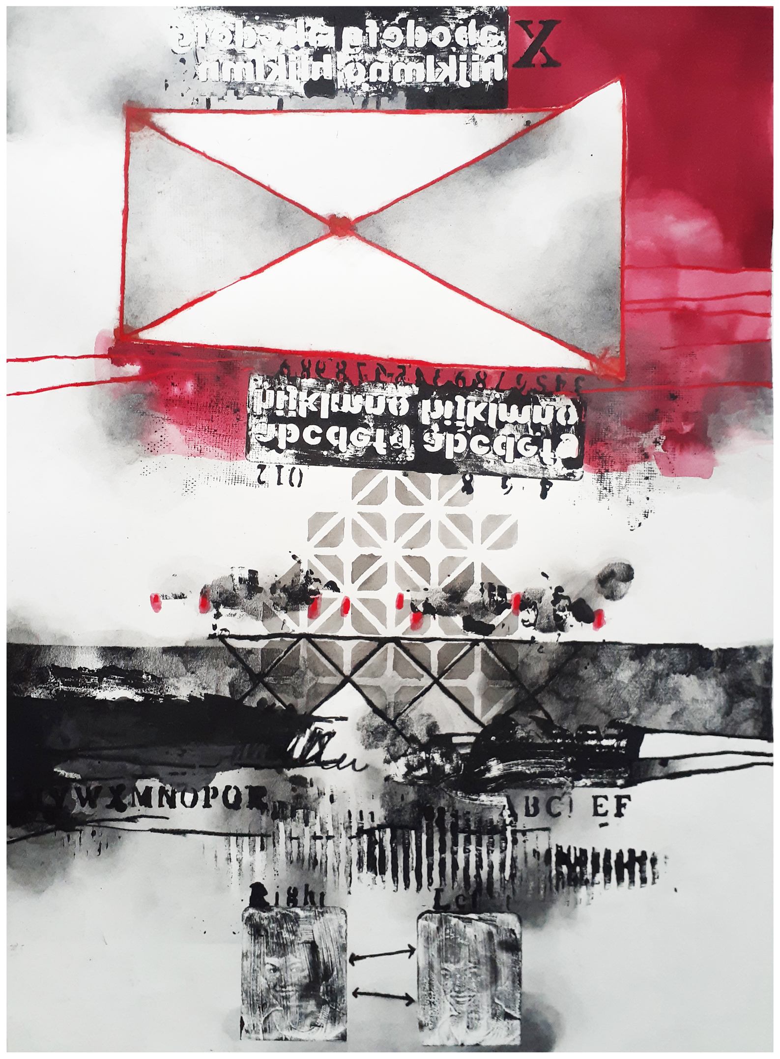 Composition NO. 261 [ Crimson Glow ] is an original mixed media artwork that explores the breaking of barriers, either personal or placed upon from the surrounding environment. The internal desire for the personal freedom that is required for a peaceful existence. The old patterns, behaviours and thoughts that often needed to change. The work included the use of pencils [various and layered], inks, paint, oil sticks, stencils, hand made forms and vintage printing plate. This artwork is on Saunders Waterford 300 gsm paper that will require framing for hanging.