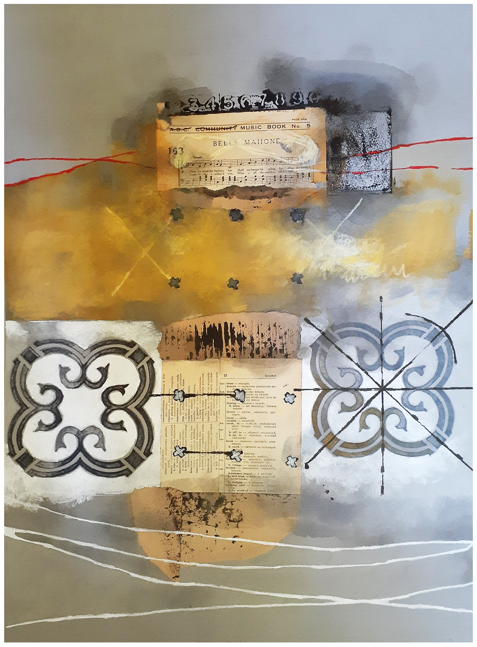 Artwork includes the use of pencils [various], inks, paint, oil sticks, paper, stencils and hand made forms that have been printed on Saunders Waterford paper/card 425 gsm. Artwork is signed and titled at the bottom of piece and also comes with a signed certificate of authenticity.
