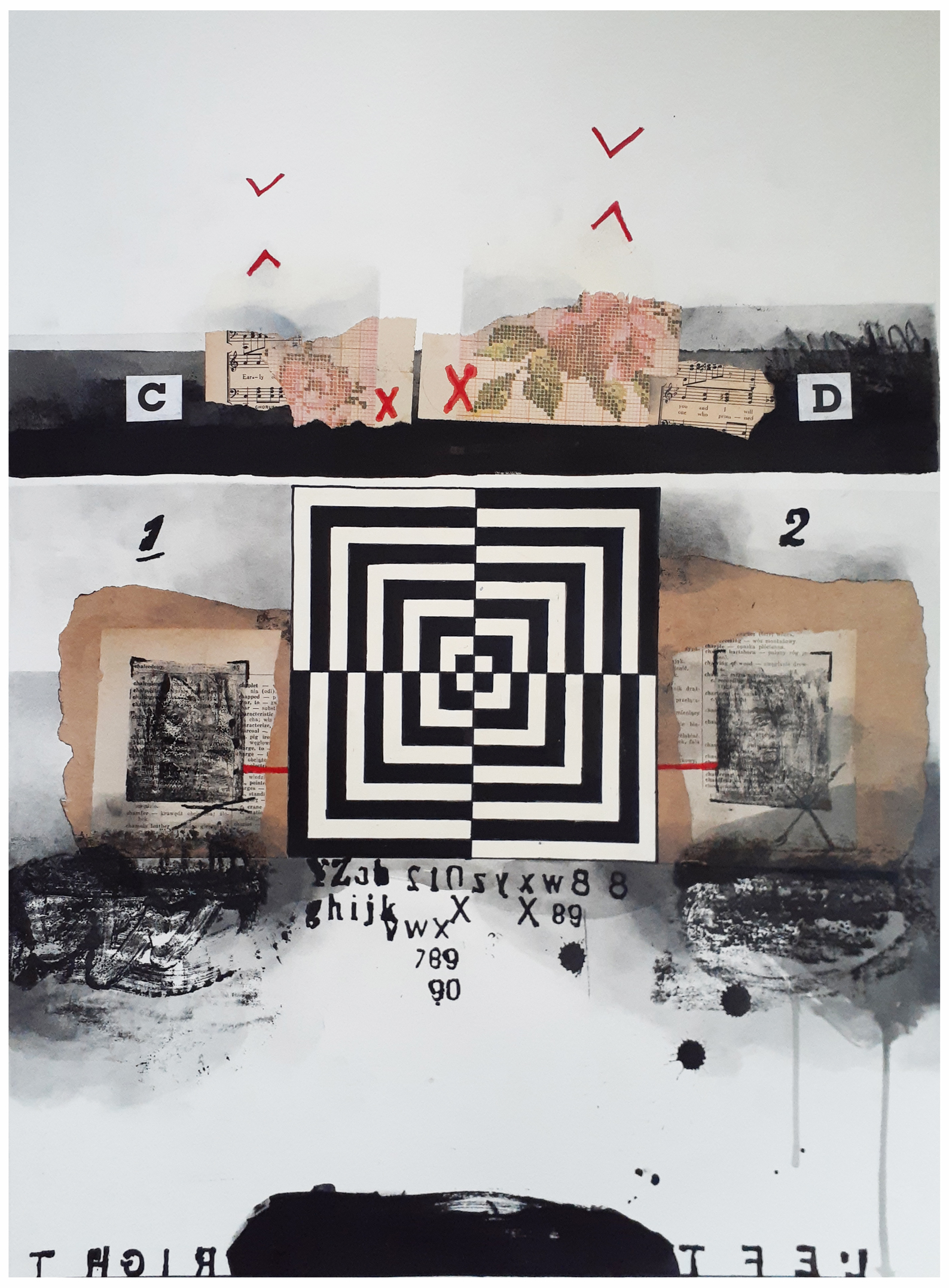 “Composition No. 343 [Finding X ]” is an original mixed media artwork created on Saunders Waterford artist [425gsm] paper by Melbourne artist G Kustom Kuhl. The black and white optical illusion pattern placed in the centre of the work creates movement that expands towards the external elements surrounding all of us everyday. Finding X is in reference to the internal explosion that often happens with great emotion, whether it be love, joy, passion or life.