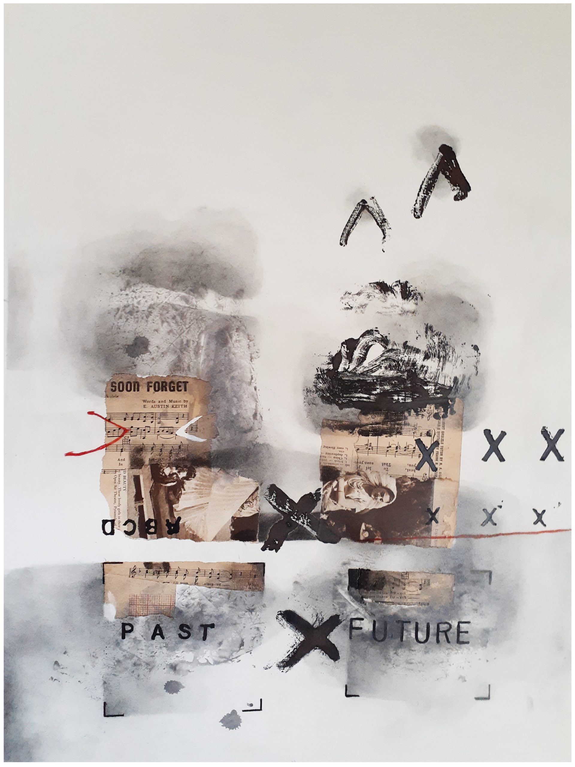 “Composition No. 378 [Past X Future]” is an original mixed media artwork by Melbourne abstract mixed media artist G Kustom Kuhl. The work explores the learnings of the past experiences, without allowing it to control the future and merging it into a better, experienced future. Using the knowledge to create a better, brighter future. The artwork has been created on Saunders Waterford 425 gsm artist paper with pencils, inks, printing plates, stencils, vintage papers and hand made forms for printing.