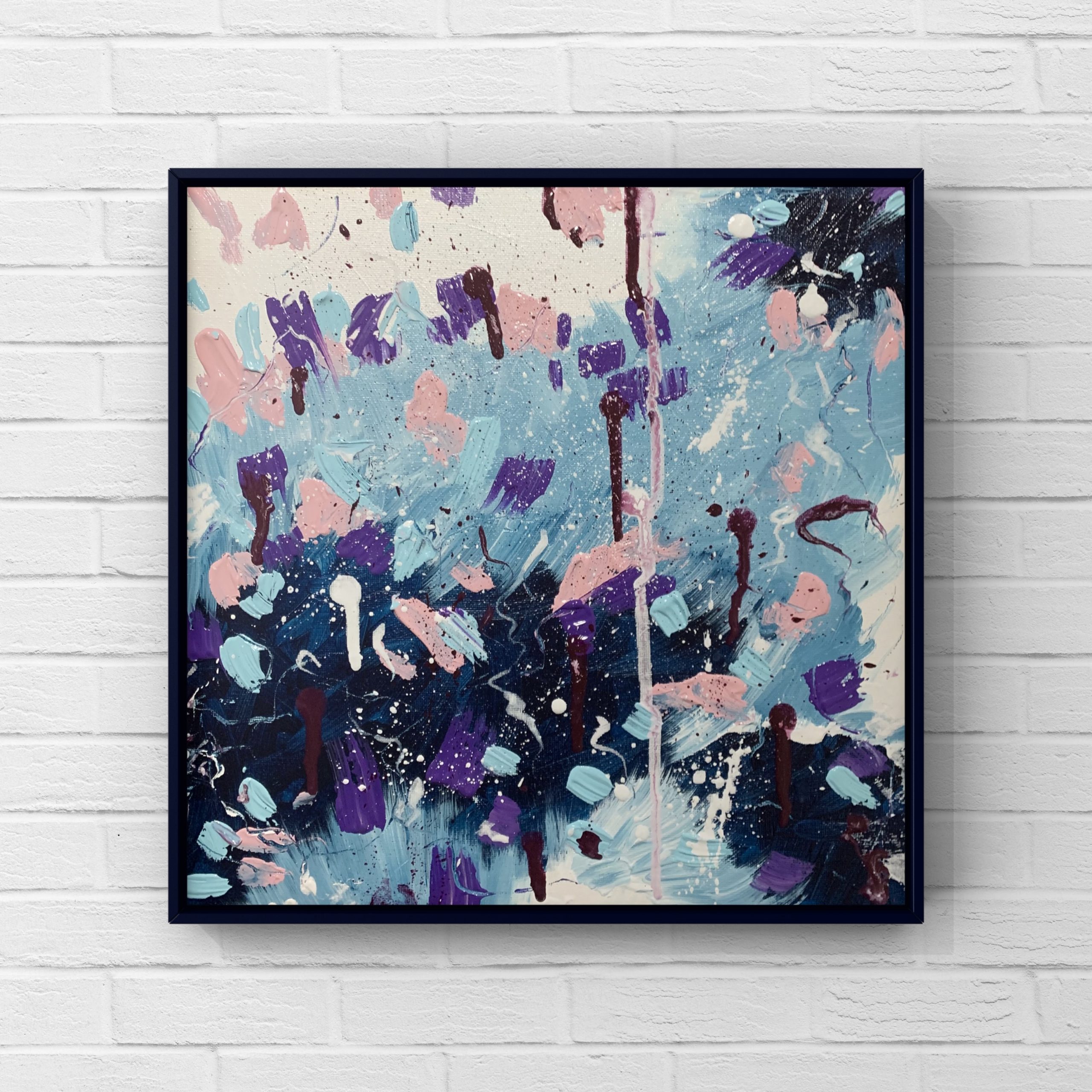 Original abstract artwork. Acrylic Paint on streched canvas, framed, and ready to hang.
