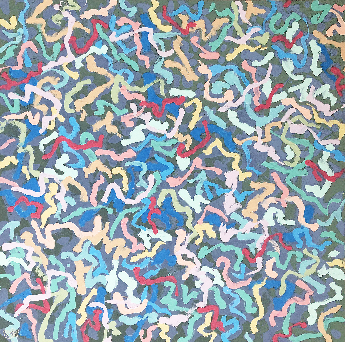 Confetti by David Clare – abstract dabs of paint applied in random patterns to suggest colourful confetti flying in the breeze.