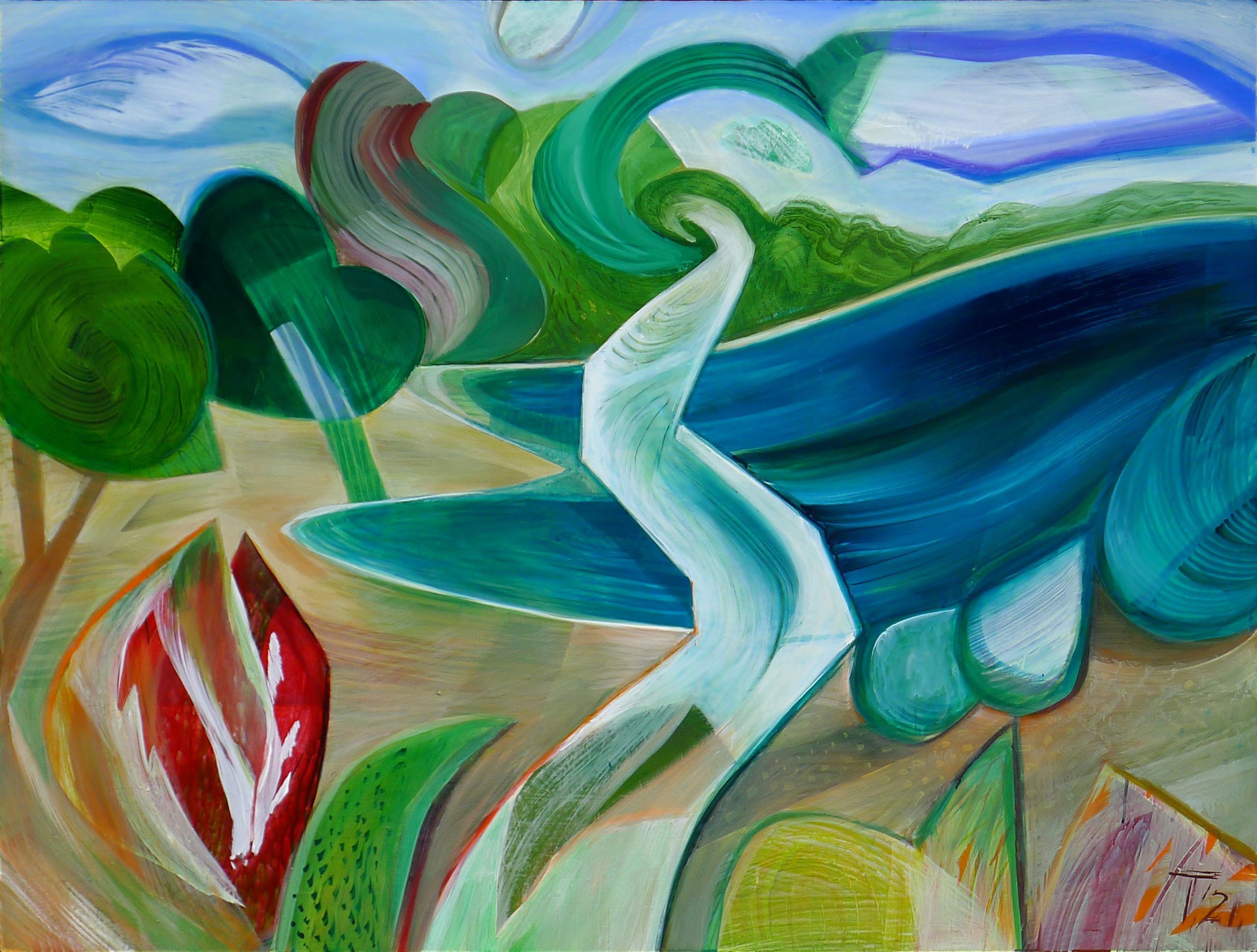 Flow acrylic on cradled wood panel