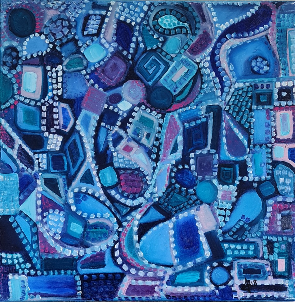 An abstract action painting, born through abstract thinking, where I just let go and allow the artwork to emerge and tell me a story. There is no pressure nor expectation of what it becomes. I really just let go and enjoy the evolution through the act of applying colour and of painting. My abstract pieces are heavily based on my own thoughts and feelings, explored through colour and design.