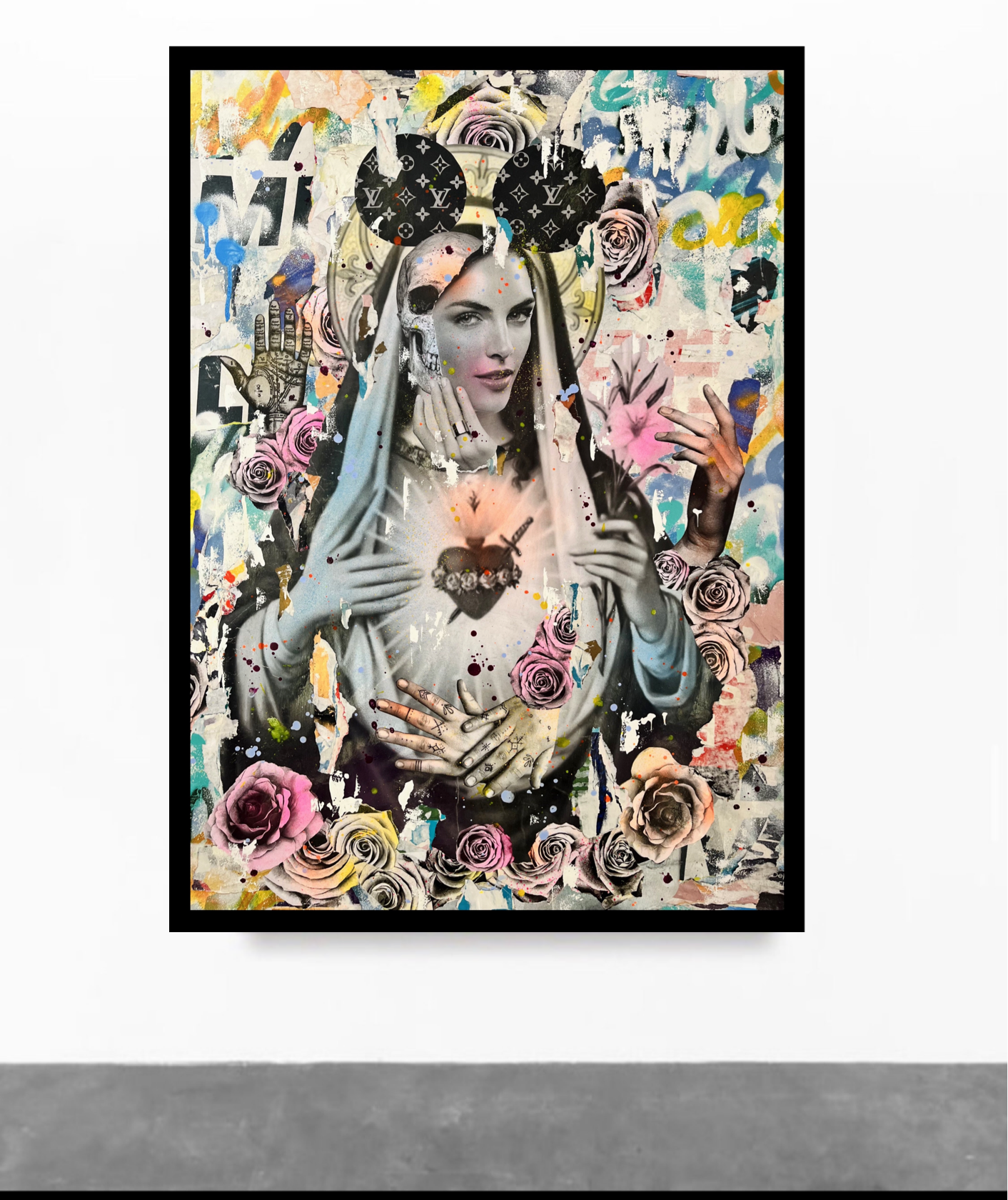 Some of my works are also inspired by Mexican Art and Outsider Art, and have Elements of Sacred Geometry & comment on modern society.
