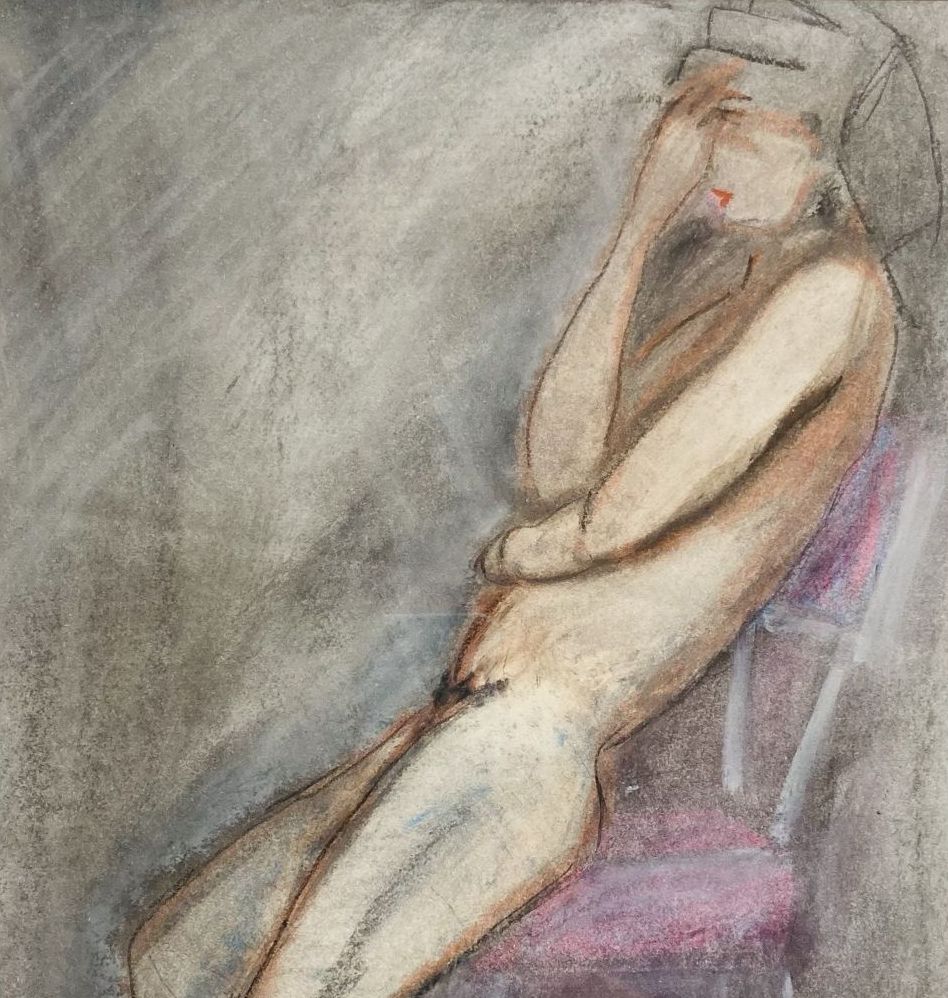 Contemplation is one of the very few Oil Pastels I have done during a life drawing session on 26cm by 34cm acrylic paper and it is framed with a black modern 33cm x 43cm frame with a white mat and protected by glass. Two D Rings and a hanging wire are attached to the back and it is ready for hanging.