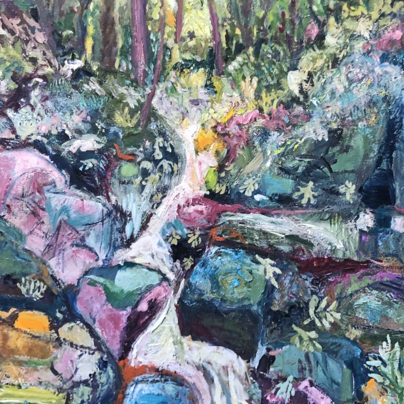 The painting exudes a tranquil, almost ethereal atmosphere, where the interplay of colours and textures draws the viewer into a dreamlike, natural world.