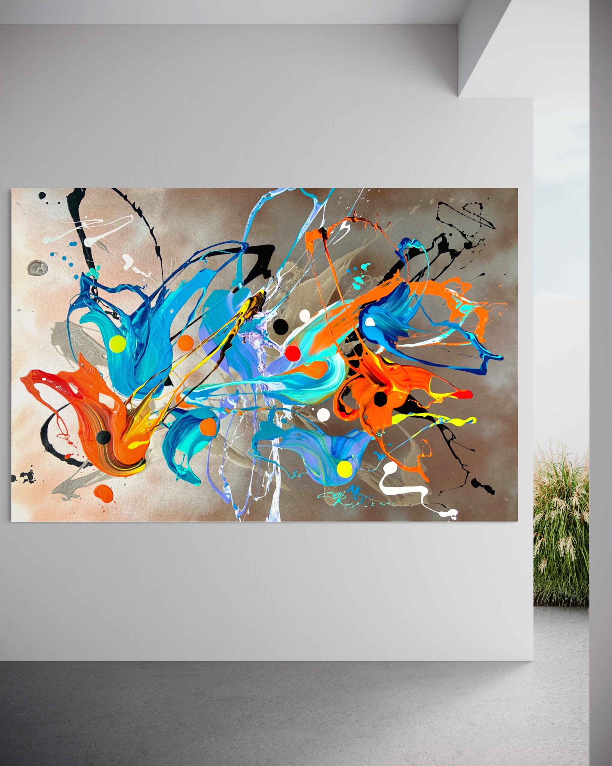 Copper and Chrome by Jonathan Redmayne is my latest painting for November from my popular collection “ carefully blended copper and chrome aerosol with metallic elements and splashes, all arranged by showcasing organic shapes that orchestrate a narrative of conflict and harmony, fragments of contrasting colours created through blending brushstrokes, abstract signatures and sculptural like curves.