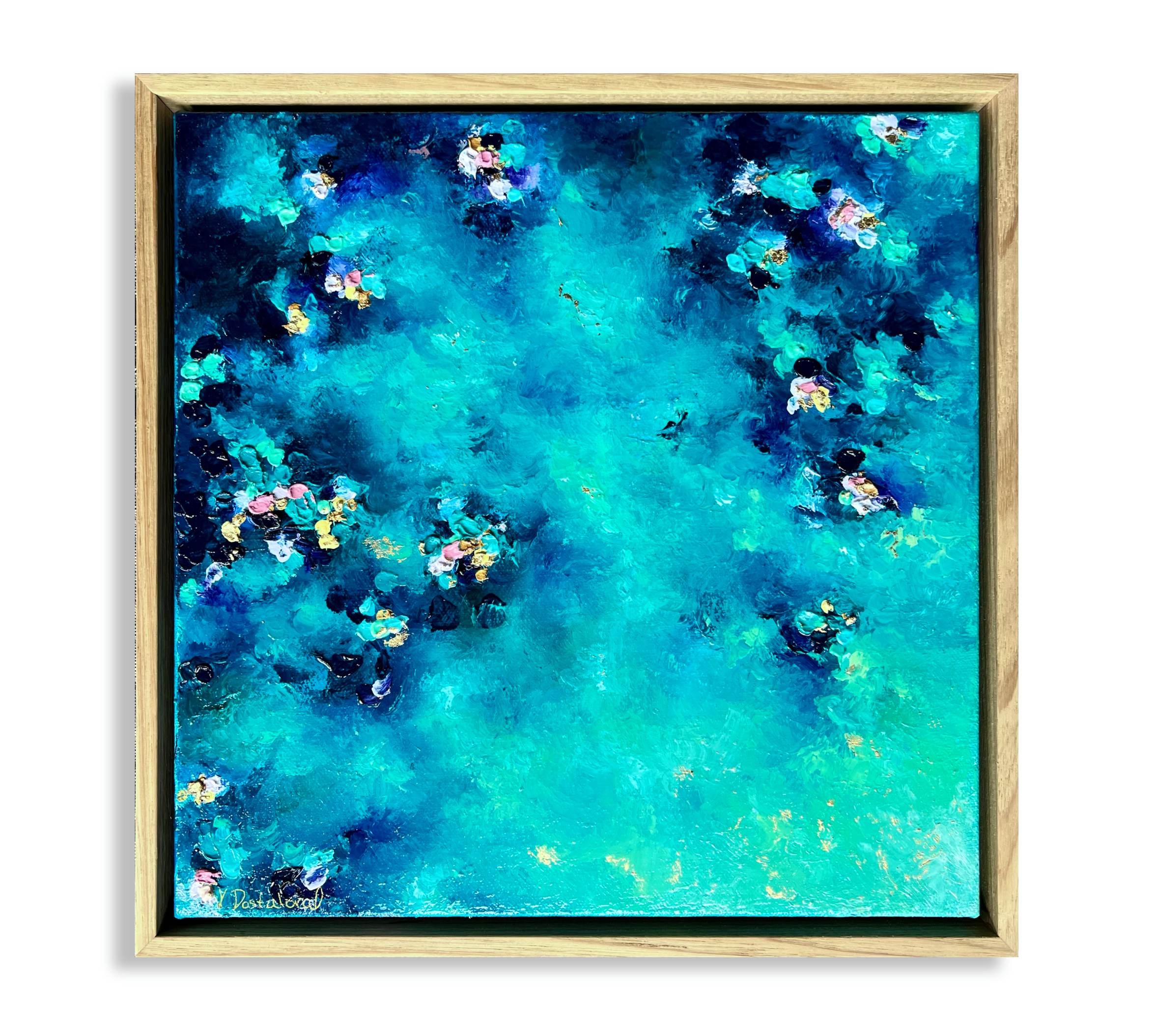 Some of my canvases are ordered with a float frame, usually the most popular is a Tasmanian oak frame. If you prefer to frame the piece once the painting is finished, I can assist you in organising a custom frame or you can choose to arrange framing yourself.