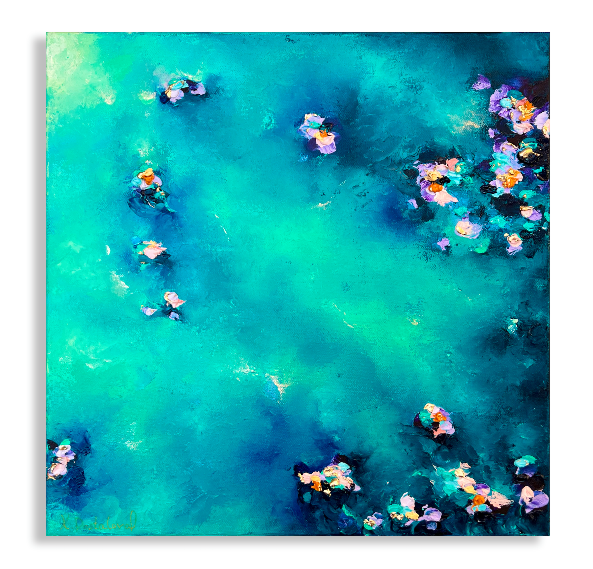 Some of my canvases are ordered with a float frame, usually the most popular is a Tasmanian oak frame. If you prefer to frame the piece once the painting is finished, I can assist you in organising a custom frame or you can choose to arrange framing yourself.