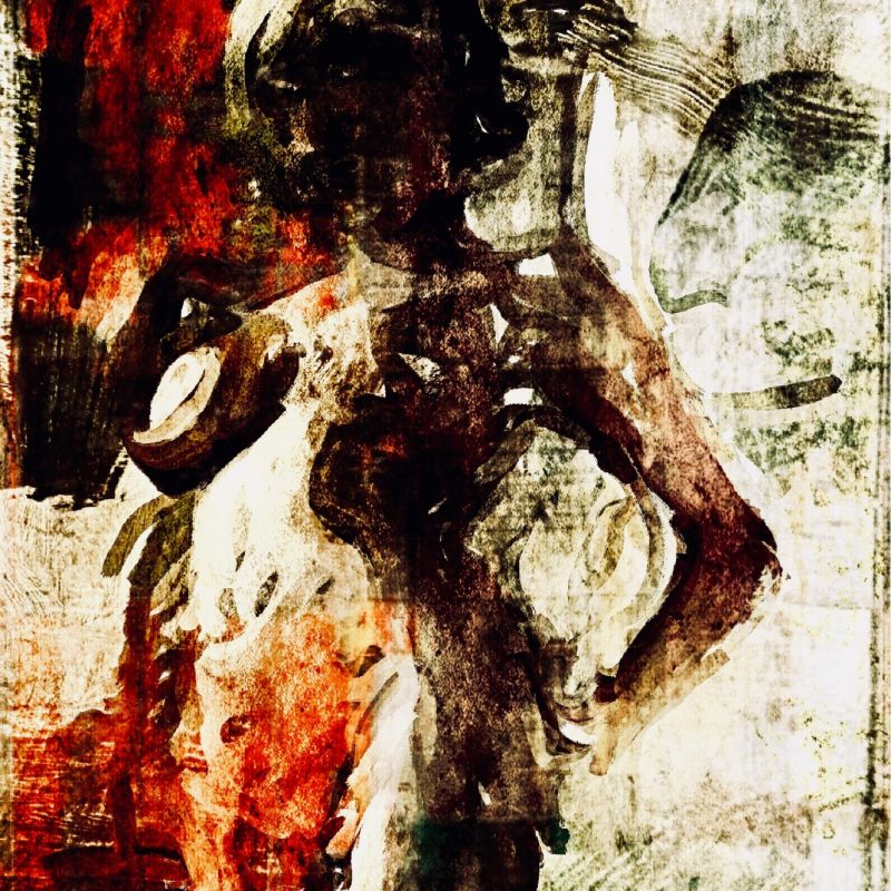 Watercolour washes fill the spaces created by the ink line work and makes the piece look like stained glass. The ink line work picks out each element of the image with an overlay of organic expressive lines to hold it all together.