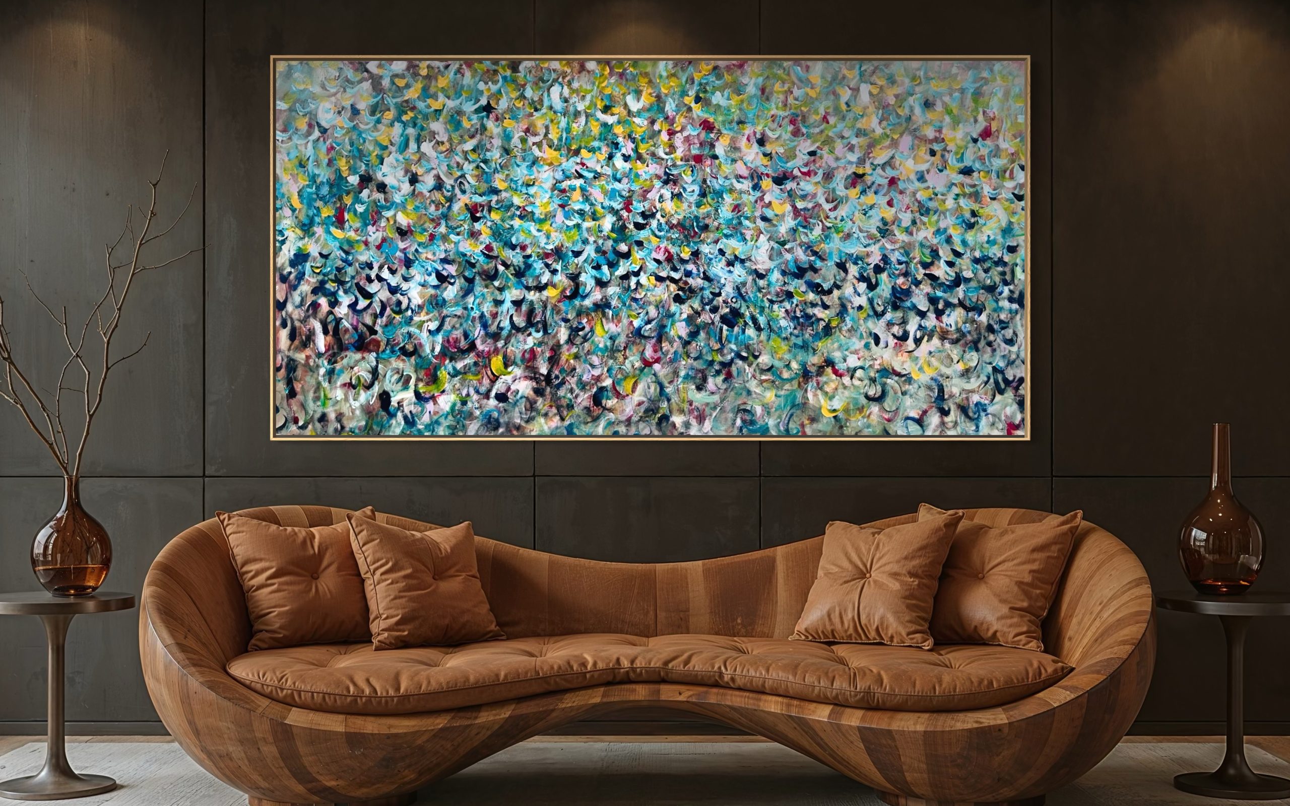The interplay of hues evokes the fluidity and chaos of nature. It’s a festival on canvas!