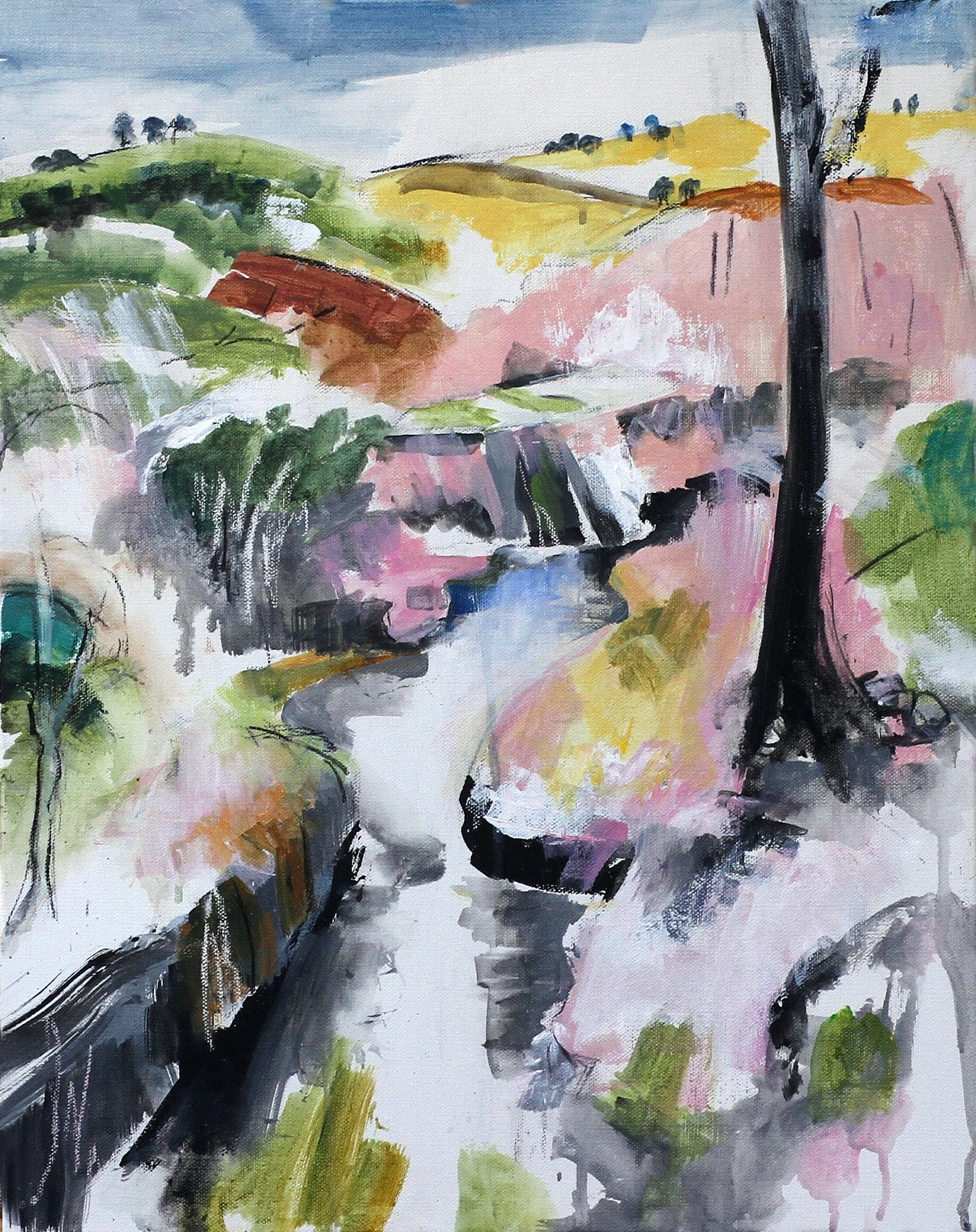 Country Creek Bingara by Kathryn Fenton – When Kathryn came across this meandering creek on a plein air location hunt in Bingara NSW,