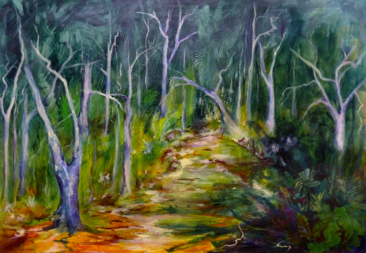 Country Track by Cathy Gilday – An impressionistic styled painting of a typical Australian country track. Painted from memory‚ from the many wonderful days exploring the beautiful secluded Victorian countryside. Inspired by my love for painting trees and nature.