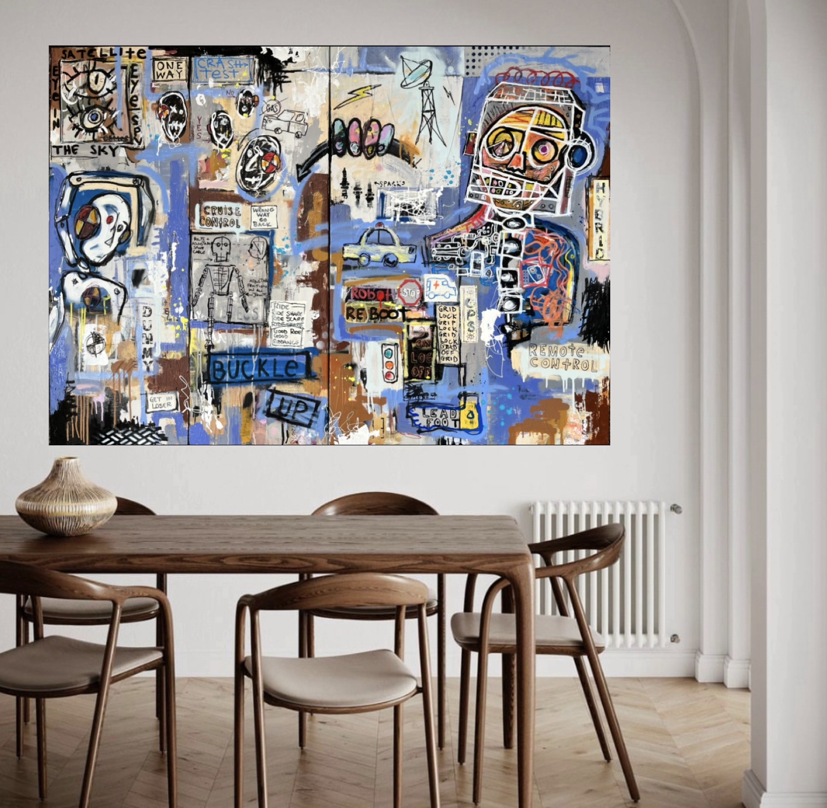 Neo Pop Painting on 2 Canvases, chronicling the rise of the machines taking over the roads..