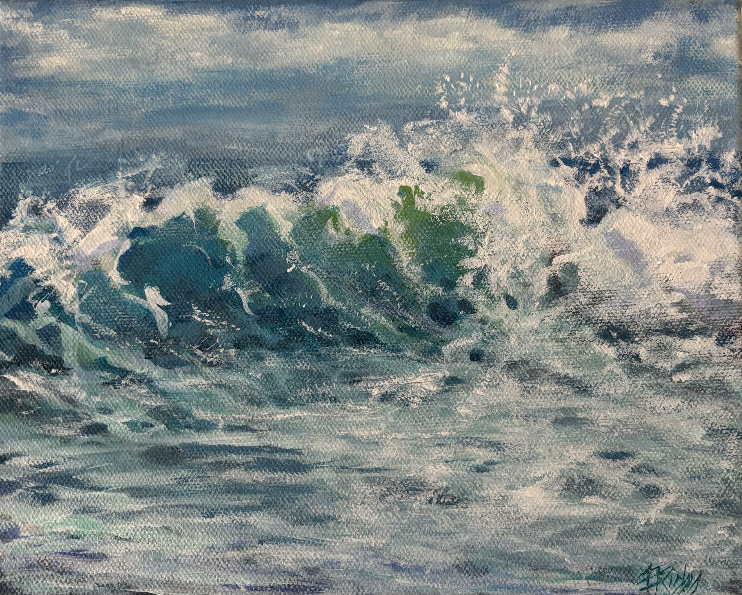 The ocean, the waves , the seaspray inspire a wealth of inspiration for work in the studio. My work begins from the moment I step on the beach until the last stroke of paint on canvas. Living only a short distance away from the Northern beaches I am frequently there dipping my toes in the water and filling my senses with images for new works. I hope that whoever buys this miniature painting will be transported to the location that inspired its being. I have used only Atelier professional paints and applied both paintbrush and palette knife techniques.