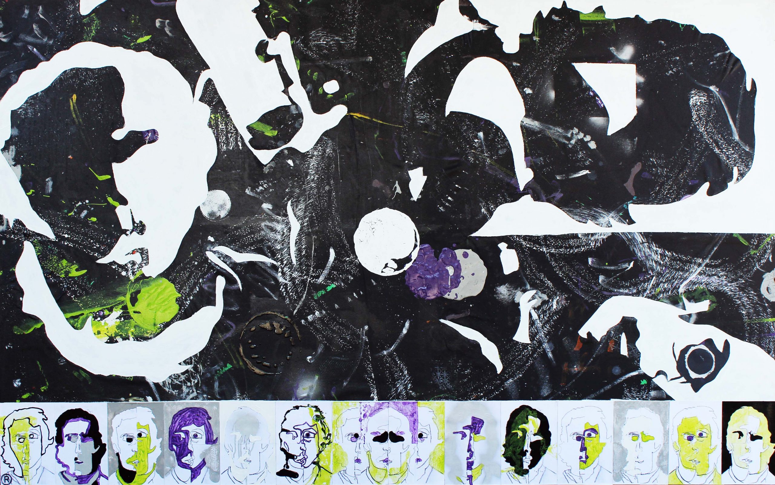 Mixed media – acrylic spray enamel oil stick and collage on canvas