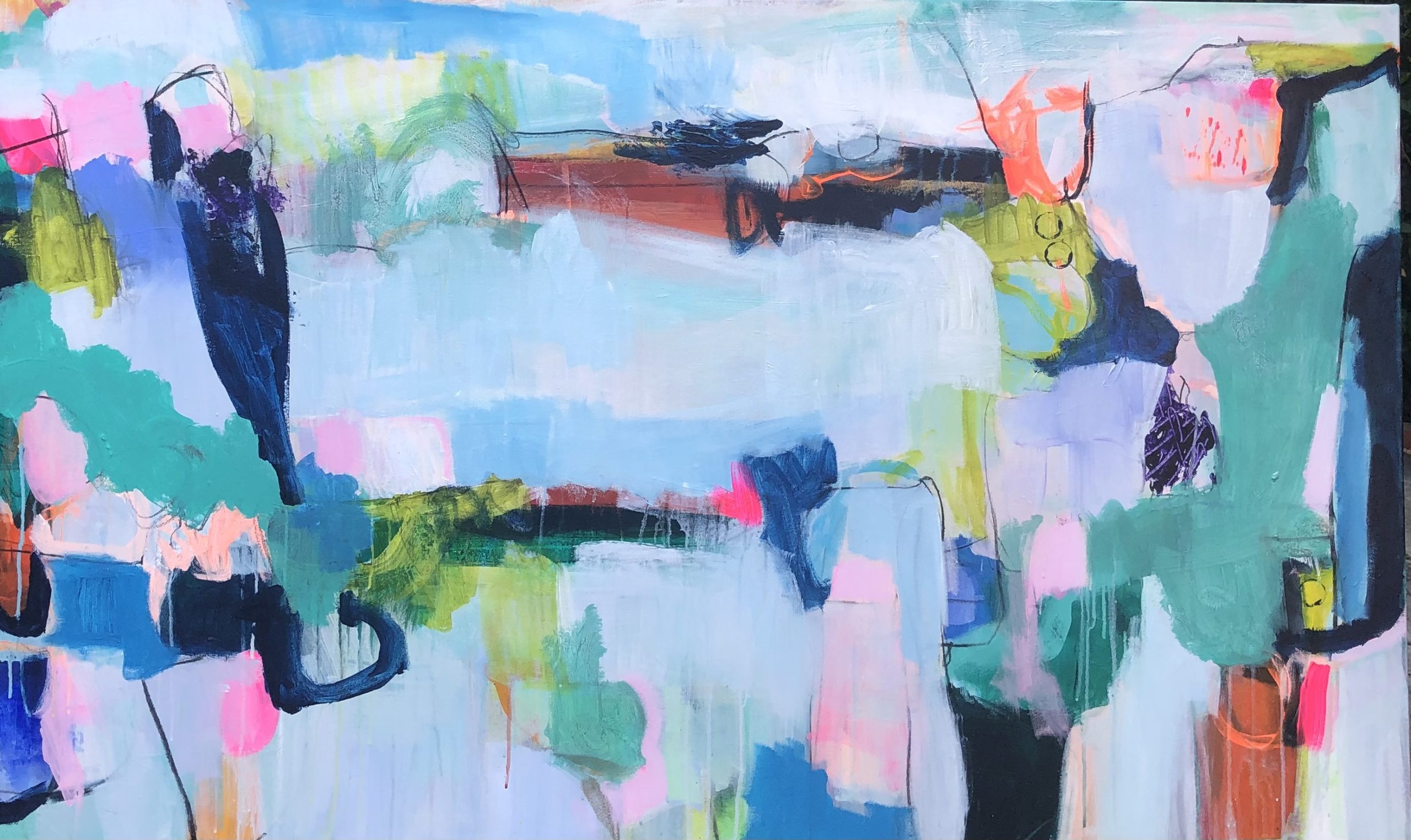 Crossing by Carmel Reilly – Original acrylic abstract painting with touches of charcoal.