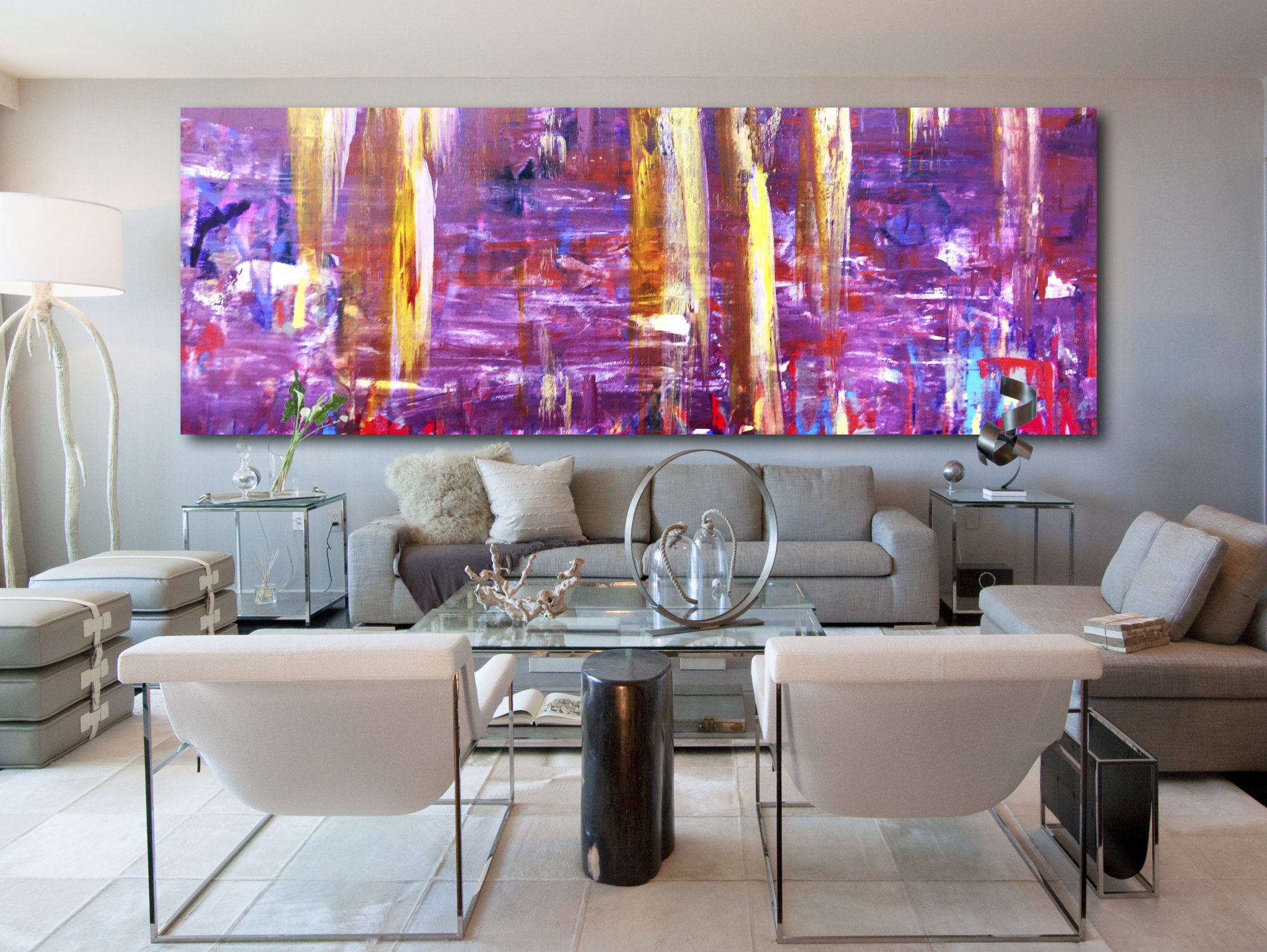 In the photos, where the painting is shown mounted on a wall, these are purely for illustrative purposes. You should review the dimension of the artwork to be sure the work suits your needs. In the case when a painting is sold without a frame, of course, you can add a frame of your choosing and so it will add to the overall dimensions.