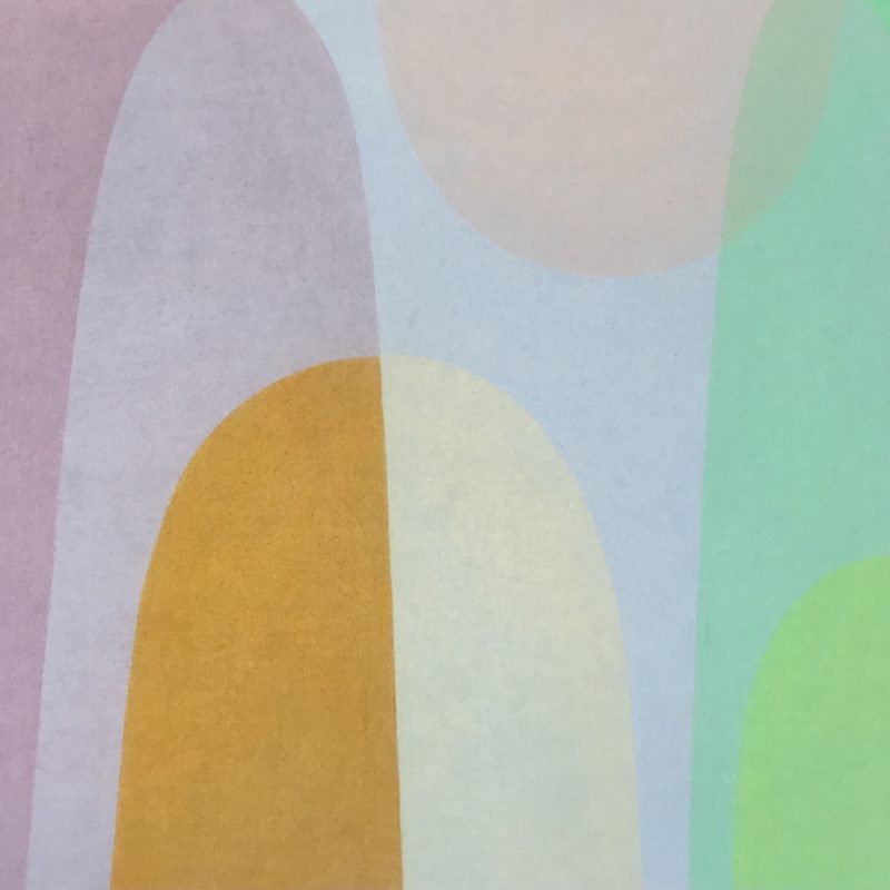 This stunning piece combines pencil and textured mark making with a bold palette of green, grey, black, coral, orange, red, beige and white.