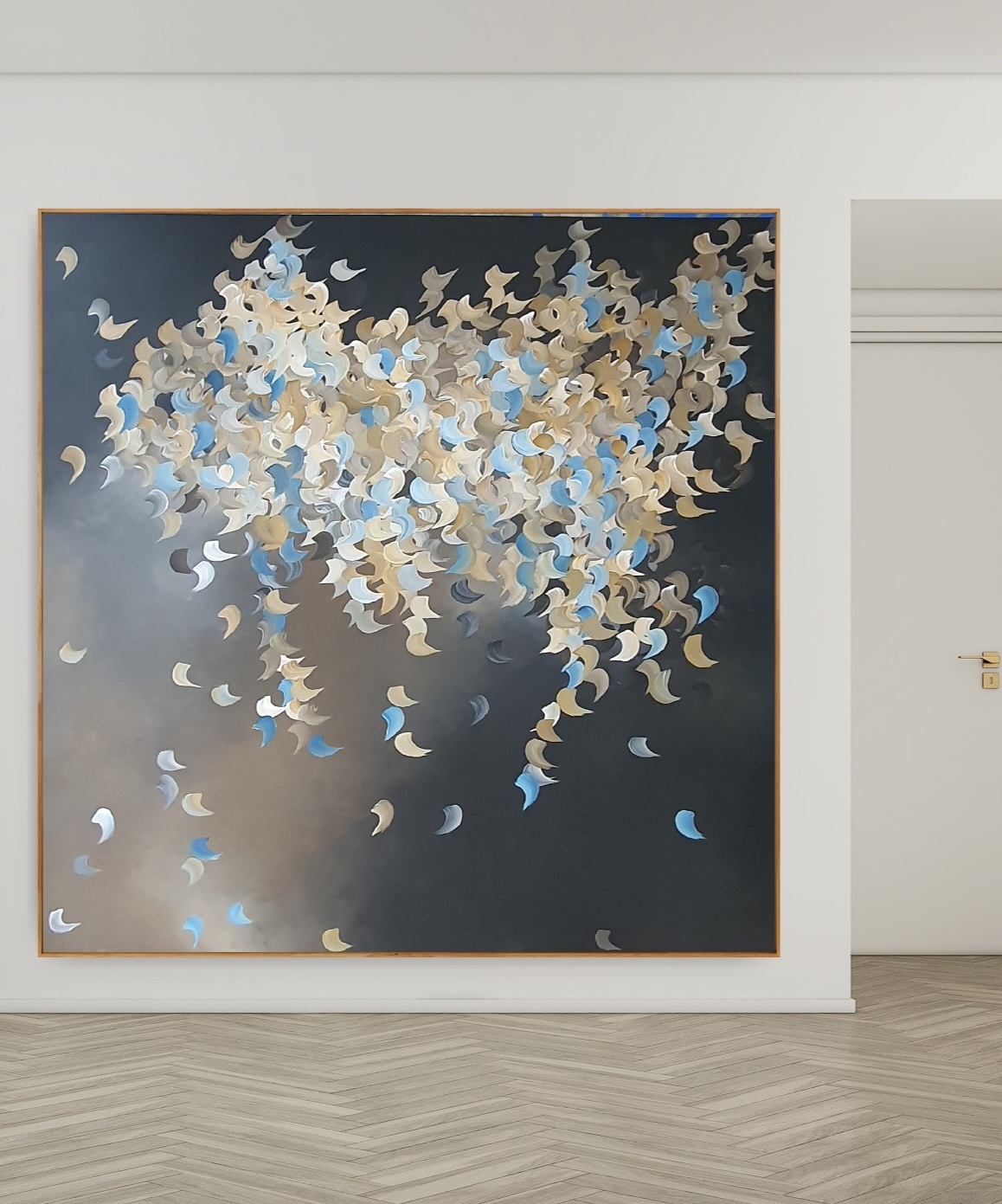 I view painting as sheer passion and feeling. Through my process I don’t seek to depict a set idea or subject, but instead I let scenes and dynamic movement emerge organically.
