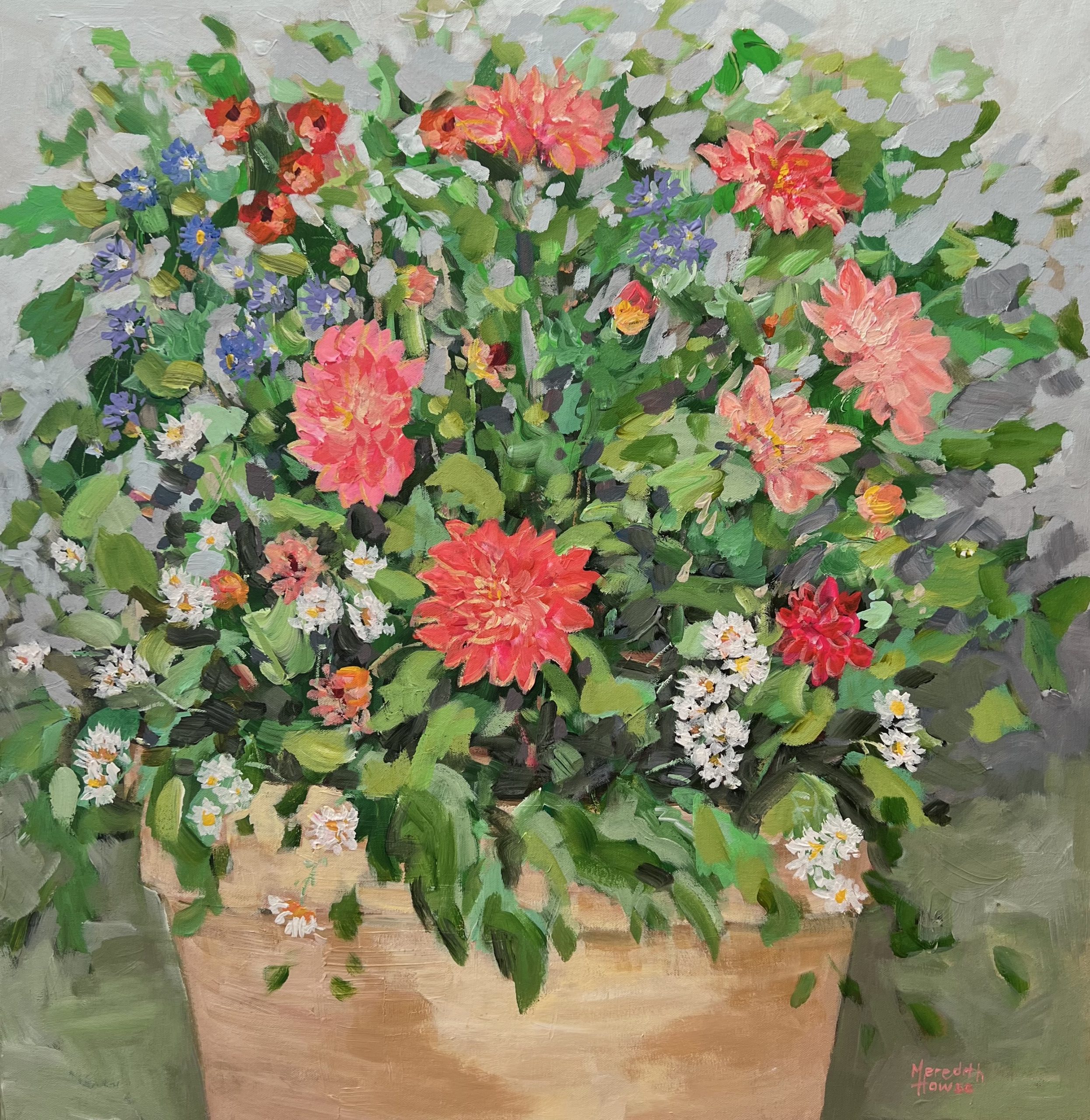 ‘Dahlia Vintage’, by Meredith Howse transports viewers to the natural beauty of a flower garden. The painting showcases an array of blooms.