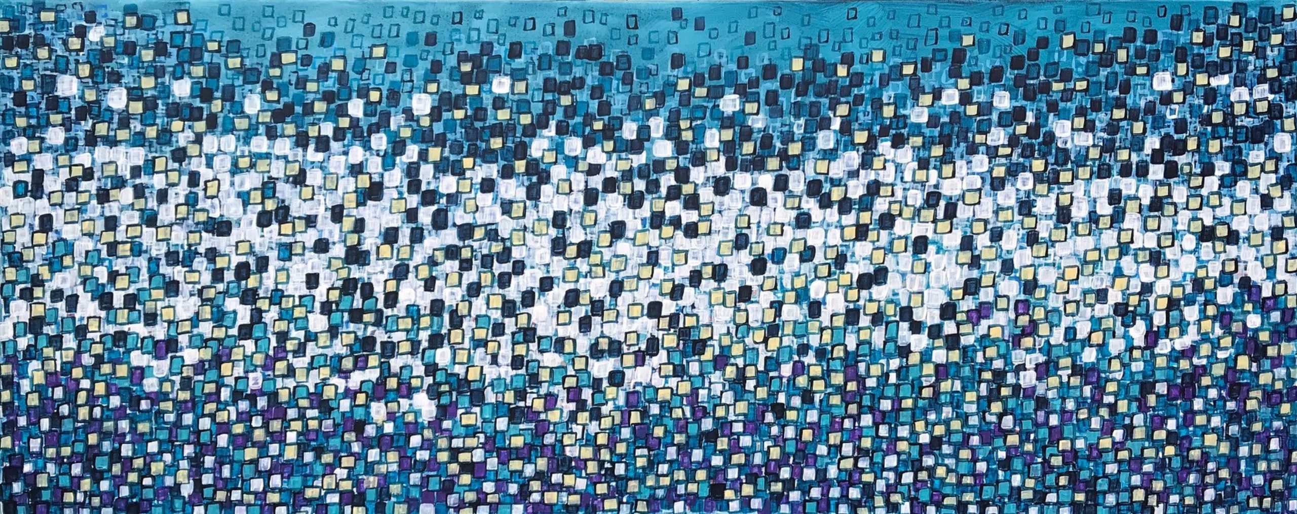Lots of squares applied, one on top of the other. Waiting for each colour to dry before the next one added. Takes time but I always love the result. Love the look.