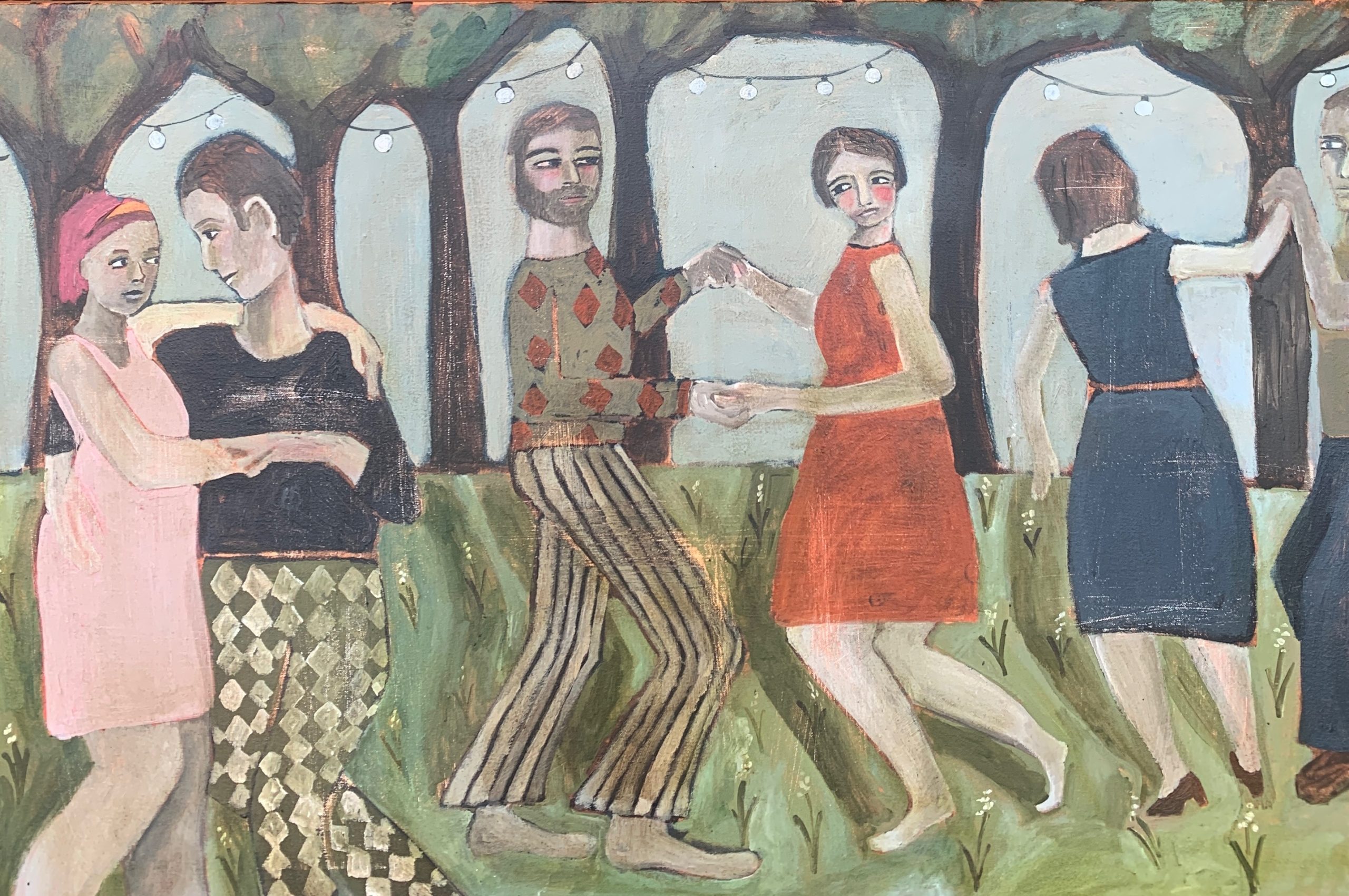 I hope that my art captures something true about the world — the beauty of the ordinary, the complexity of human interaction, the intensity of an emotion. My art is largely figurative and I attempt to represent what I see and experience with a sense of appreciation and humour. My work is colourful and eye-catching and can tend towards the naive, sometimes incorporating elements of fantasy. I like my art to tell a story, to prompt the viewer to think ‘I know exactly how that feels,’ or to inspire a sense of joy, longing or nostalgia.