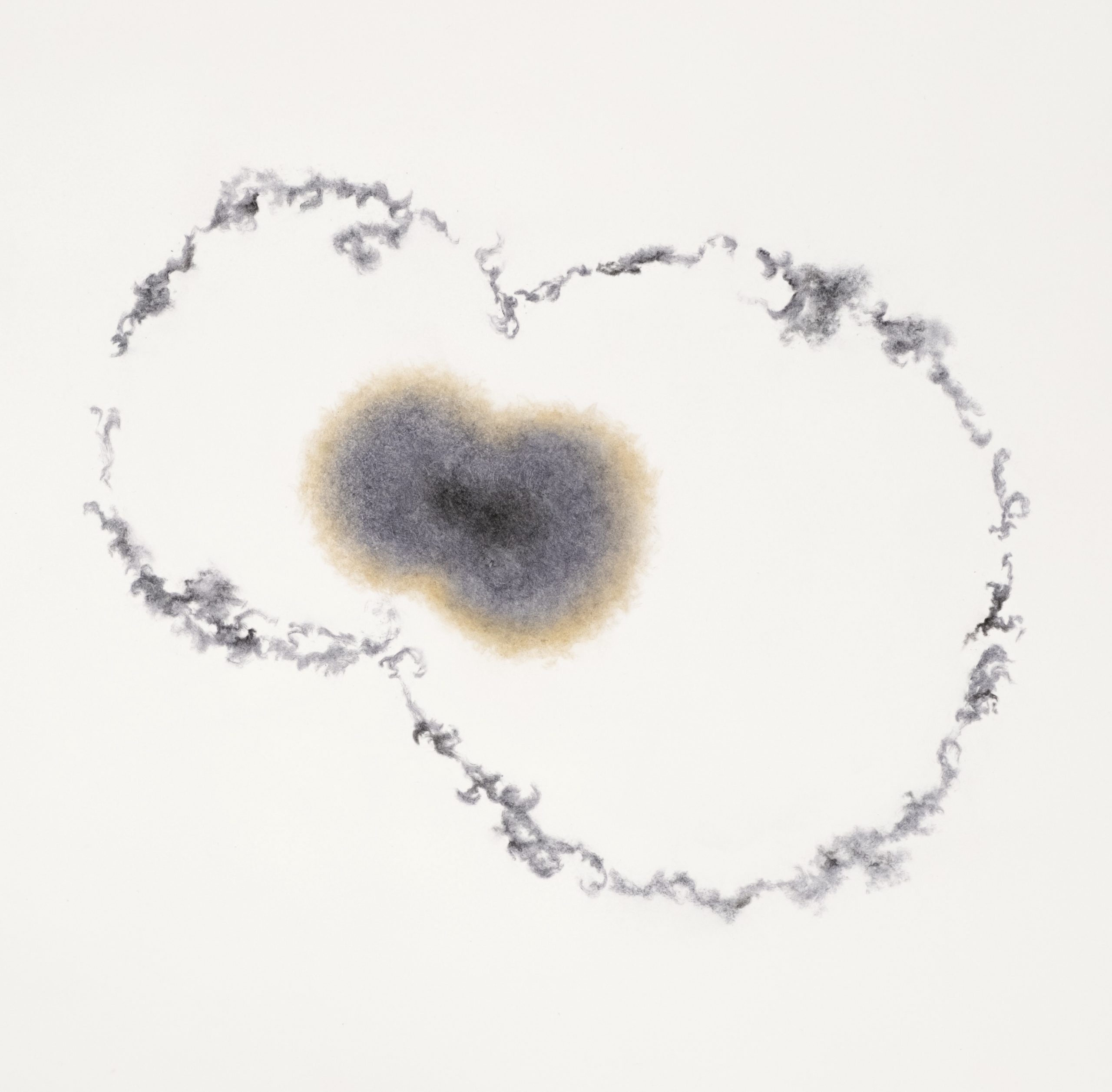 Dance Around You by Rihasa Hill – This piece is part of a collection of tinted charcoal drawings exploring both the simplicity and complexity of circles, and the organic imperfections created under the guise of precision.