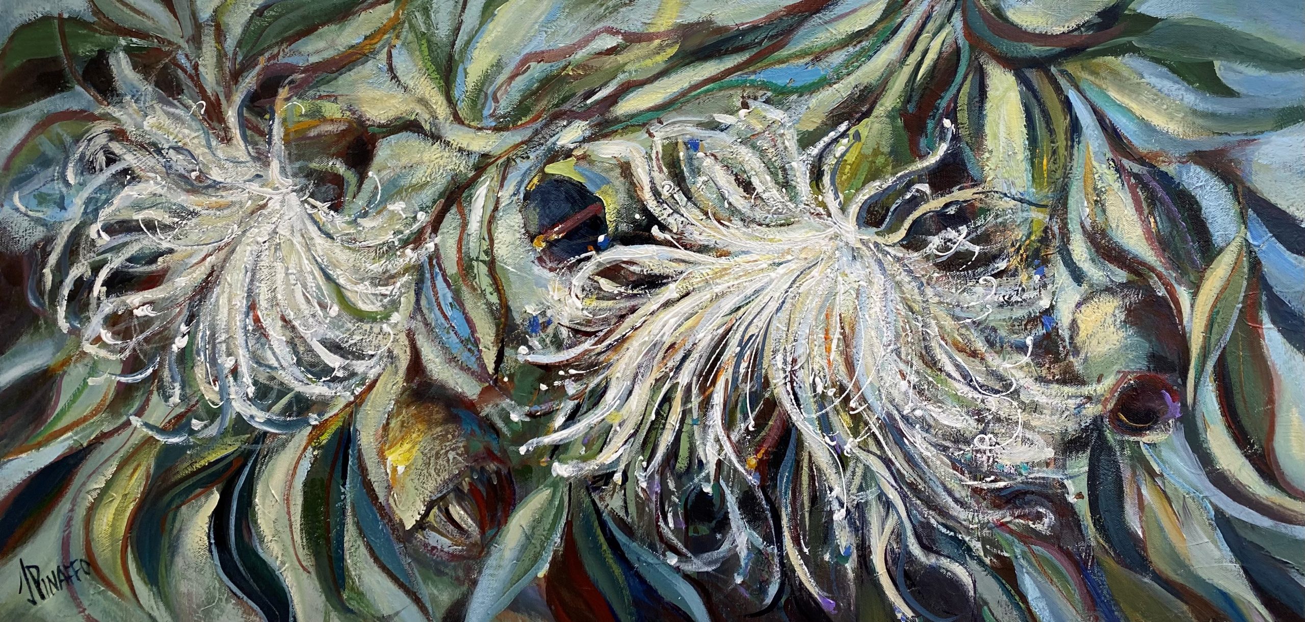 This time I chose a more subtle palette to portray the yellow/white gumnut blossoms being caressed by the wind.