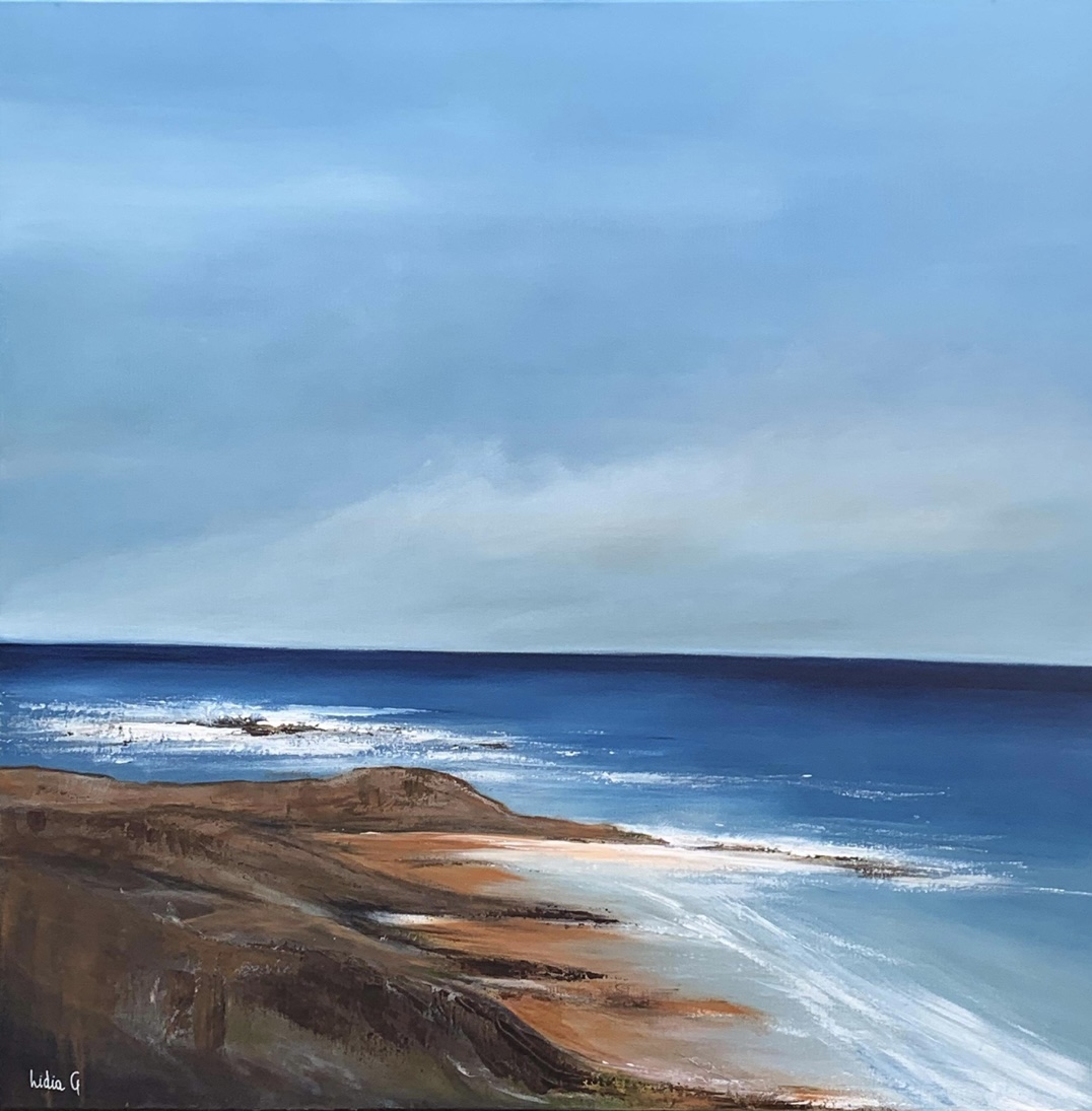 Inspired by the incredible diversity of the Australian landscape from its rugged coastlines, snow-capped mountains and the idiosyncratic landscape of the sandy desert with its sun baked monoliths and rainforests. The edges of the painting are painted in Titanium white and comes with professional wire hanger and a Certificate of Authenticity.
