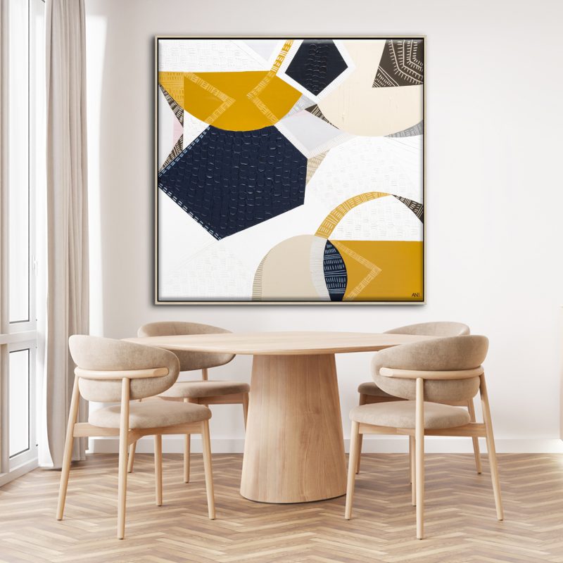 Dansa, by artist Stephanie Laine is a new abstract from her ‘Fresca’ series which focuses on the balance between spontaneity and consideration. Just like in life it’s important to plan some things but also leave space for passion and intuition to guide us. A perfect blend I think.